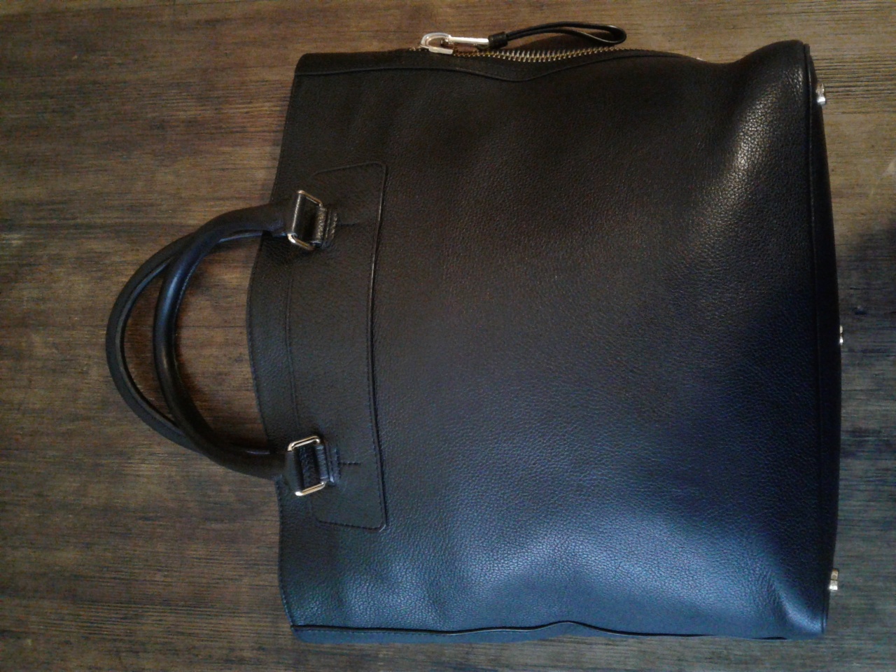 Продаю недорого элегантную и сдержанно роскошную сумку из черного зернистого кальфа с фурнитурой золотистого цвета.Была куплена в Нью-Йоркском Bergdorf Goodman более чем за 2000 $.Модель универсальная,унисекс,хотя на официальном сайте была представлена в мужской коллекции.Состояние отличное,на собачке и ножках есть слабые следы бытового использования,кожа и подкладка из твила без повреждений.Единственный минус-с внутреннего ранта ручек ребенок отковырнул кусок заливки уреза.Но дефект этот практически не виден,да и устраняется в ателье без проблем.Классический шоппер,не застегивается,внутри есть один большой кармашек на молнии,сбоку тоже кармашек на молнии с петлей.Вся фурнитура промаркирована.38H x 40,5W x18D.Сумка в регионе,вышлю без проблем куда угодно.Порядочность гарантирую.Возможен вариант личной встречи в Москве( р-н площади Арбатские ворота) цена 10.000руб.За более подробной информацией и фото прошу писать в личн.сообщения.
