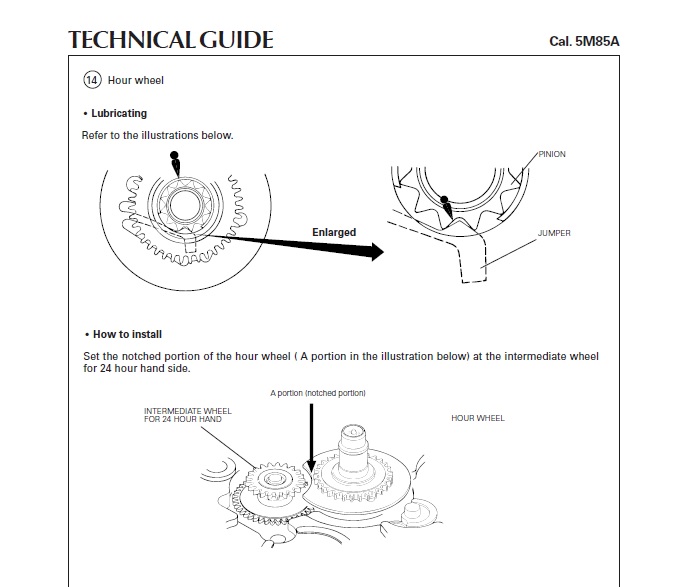 Может у нас разные тех.руководства, т.к. на моем показано как устанавливать часовое колесо, а конкретно сказано: "Установите участок с вырезом часового колеса (часть А на рисунке ниже) у промежуточного колеса со стороны 24-часовой стрелки". Я бы сказал "напротив промежуточного колеса 24-часовой стрелки", но это уже кому какой перевод более приемлем
