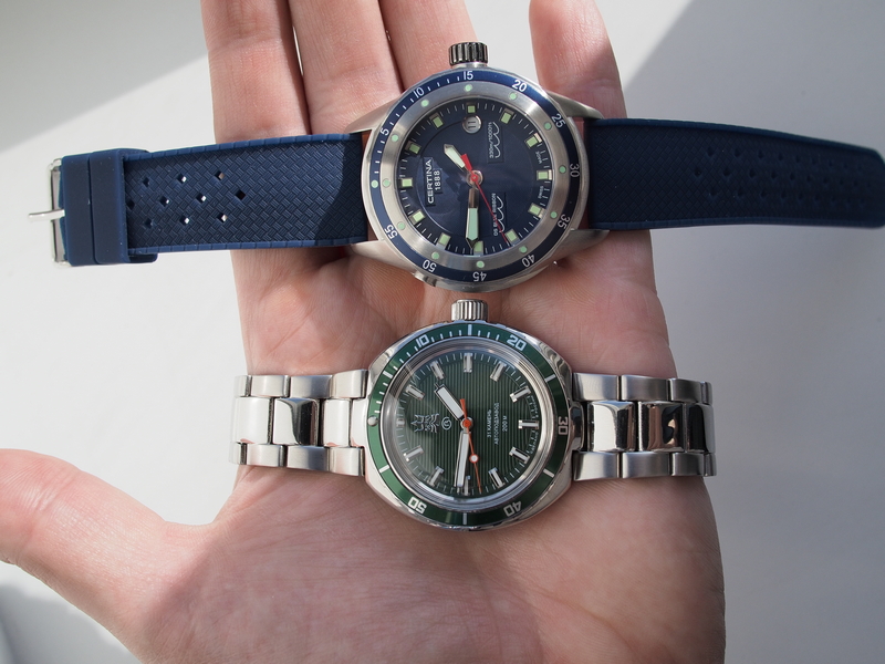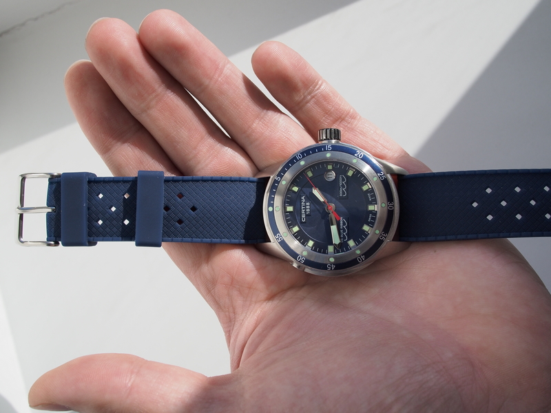 Ну и завершая, немного о внешности. При выборе я был не против часов покрупнее. Так, смотрел на черепашку Сейко. В принципе, интересна была и новая модель Ситизен BN0191. На их фоне (исключительно по цифрам характеристик, на руке не примерял) Certina заметно компактнее. Вот, например, фото с сигнатурой: