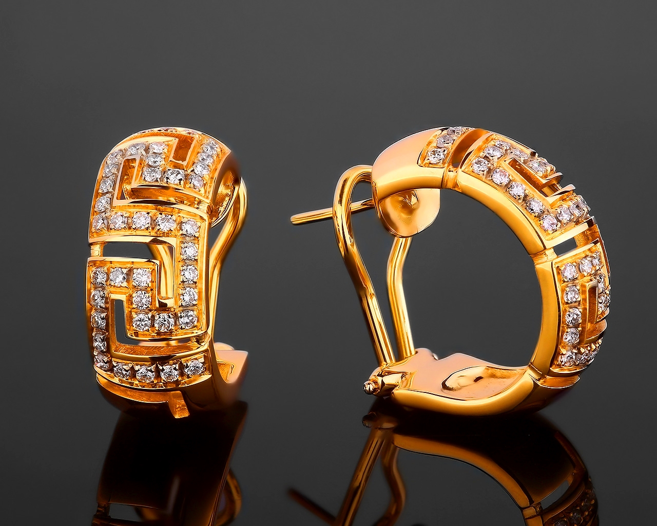 золотые серьги, серьги versace версаче, серьги с бриллиантами |