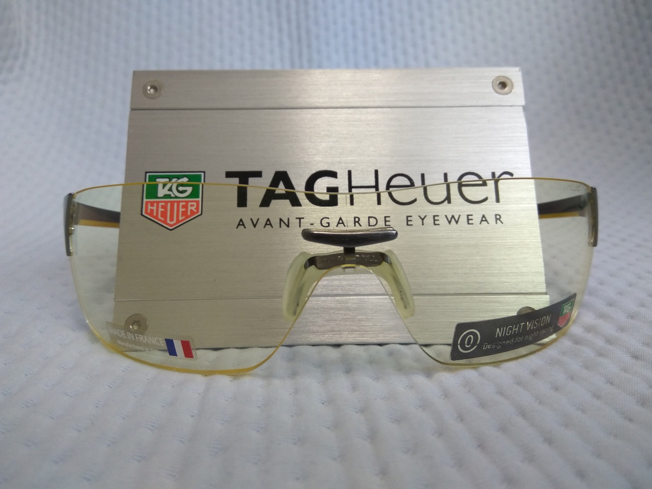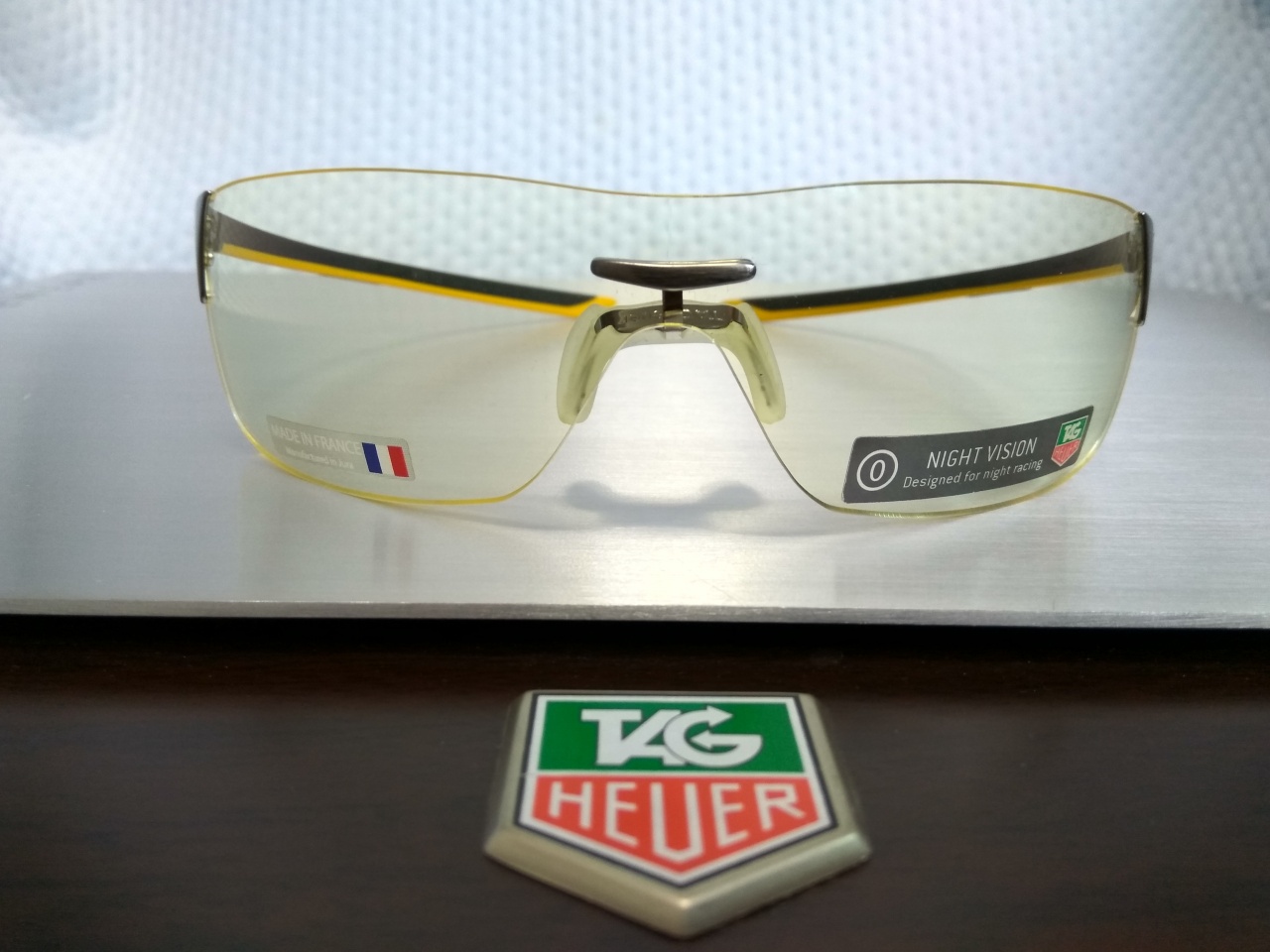 "With TAG Heuer Night Vision, the term “Avant-Garde Eyewear “ takes on its full meaning. Night Vision technology corrects natural night-time myopia and is tested and approved by professional racing-car drivers. Special pale yellow lenses enhance night-time contrasts, giving an impression of luminosity. Glare and eye fatigue are reduced.For the mythic Le Mans 24 Hour race, TAG Heuer equips the Audi Sport team with award-winning Squadra Night Vision – the world’s first opthalmic shield with integrated corrective lenses.TAG Heuer Night Vision. You’ll want to wait till dark before driving home."