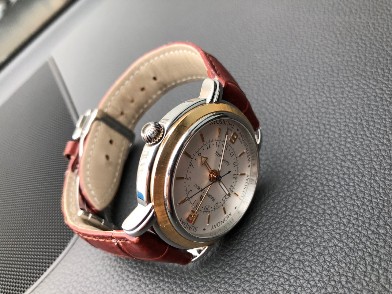 Пятистрелочный шедевр от Maurice Lacroix, сталь+золото. Оригинальный ремень заменен на реплику, фирменная застежка ML.