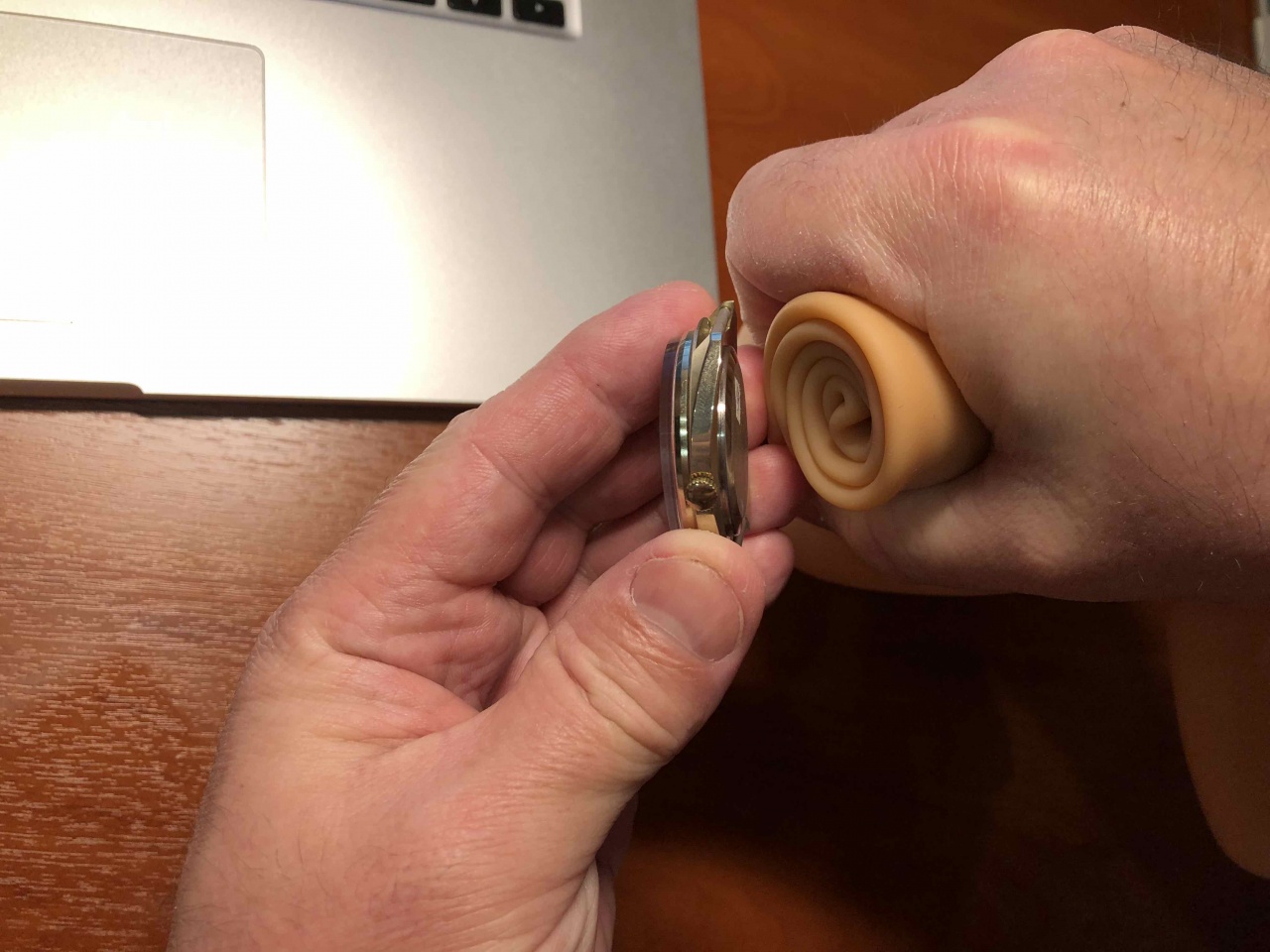Про мячик многие советуют, но при наличии диэлектрической перчатки (у меня на работе их хватает ), вопрос с мячиком отпадает. Берем перчатку, аккуратно скручиваем в трубочку большой и указательный палец, прикладываем к крышке и с усилием для создания силы трения откручиваем. Точнее, срываем крышку, чтобы потом можно было открутить руками. Точно также и закручиваем - сначала руками до конца, потом, также прикладываем перчатку (мячик) и с усилием дозакручиваем. Лучше применить спецключ (фото №3). Для самоуспокоения, можно на крышке и корпусе сделать легкую царапку, чтобы потом увидеть, закрутили ли вы крышку до конца или нет.