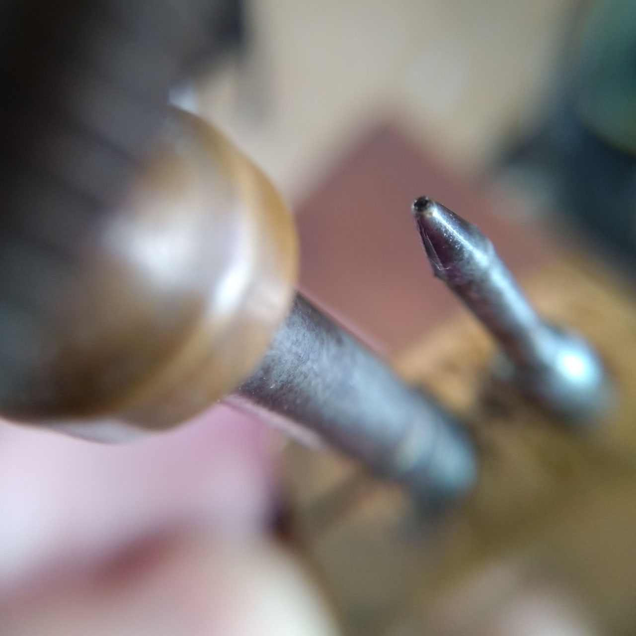 Коническое отверстие центра должно выглядеть как показано на рисунке обозначено с буквой "A", а в более модерных как обозначено буквой "B". Что касается канавке соответствующей к цапфе в Jacot drum, нужно подбирать ее (канавку) как на рисунке обозначено буквой "C", оставляя открытым только один до два сотых миллиметра диаметра, в зависимости от размера цапфы.