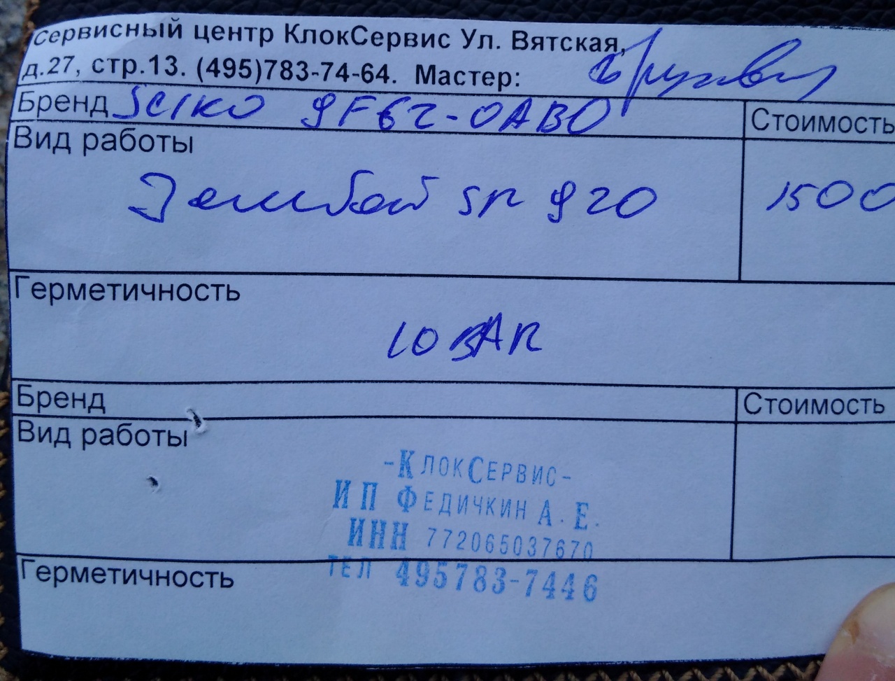 Зато порадовали другим: оказывается, после Вашего (если я правильно понял) случая было официальное письмо от Seiko в Клоксервис, в котором их обязали закупить оригинальные элементы питания и прокладки. Но процесс выяснения, сдержал ли сервис своё обещание, несколько затянулся...