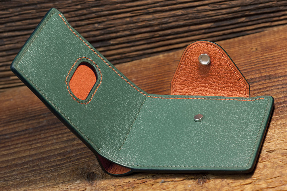 Внутренняя часть кошелька изготовлена из козьей кожи производства Alran (Франция), которая поставляется в частности Hermès.