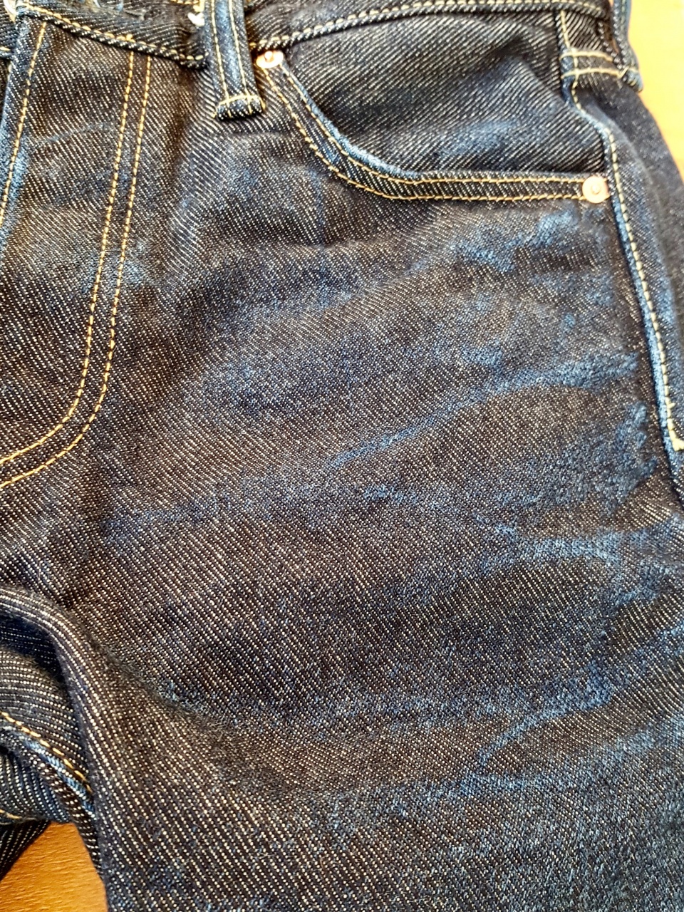 Хартовский 21 унцовый «левак» для меня представляет особый интерес , пришёл в нон воше , имеет нехарактерный для породистого денима серый сталистый окрас в основе , а также изначальную повышенную жесткость ( в сравнении с фирменным изначально мягким Хартовским 21 унцовым правостороннего плетения ) .