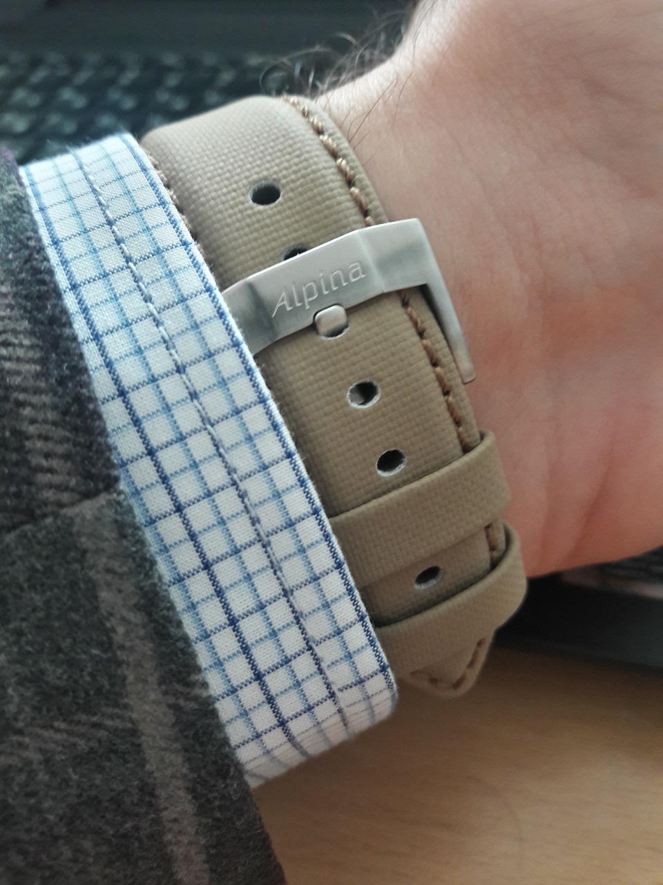 Договорились, по началу, кстати, смутило в описании ремня "Fabric", думал со временем заменить на кожаный от алпины же. Однако этот превзошел ожидания, сделан добротно, на руке вполне комфортен и выглядит отлично, решил не менять, пока не износится. Дизайн и элементы, ну по сравнению с теми, что были, читаемость гораздо лучше, особенно в вечернее время.