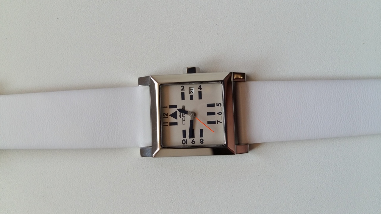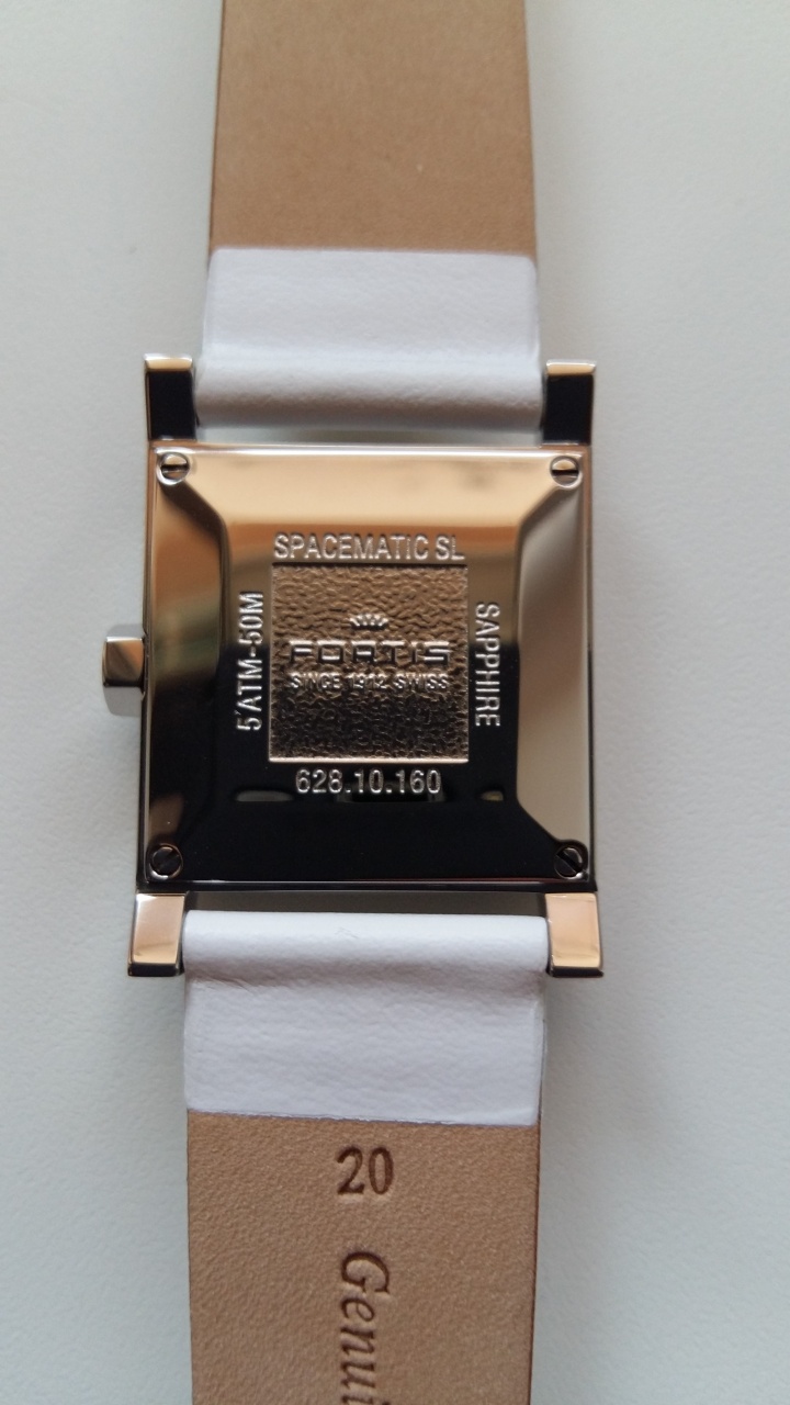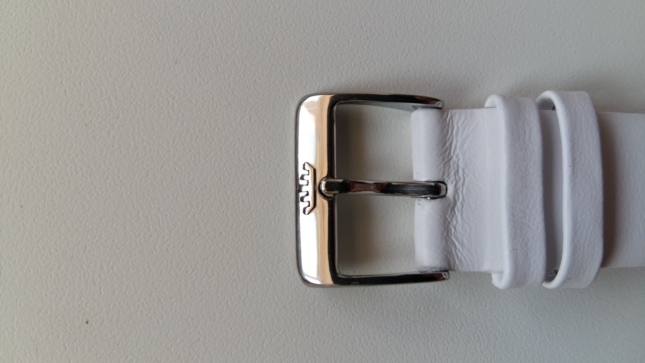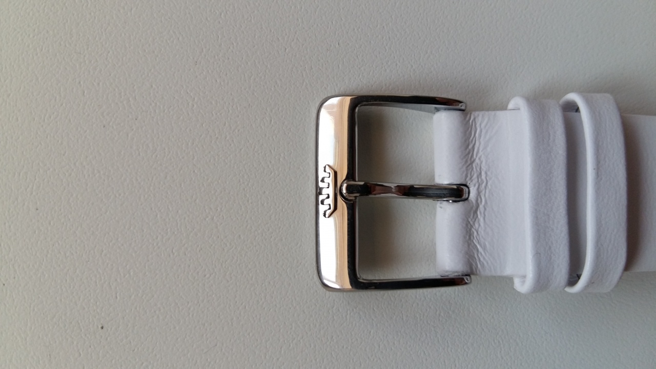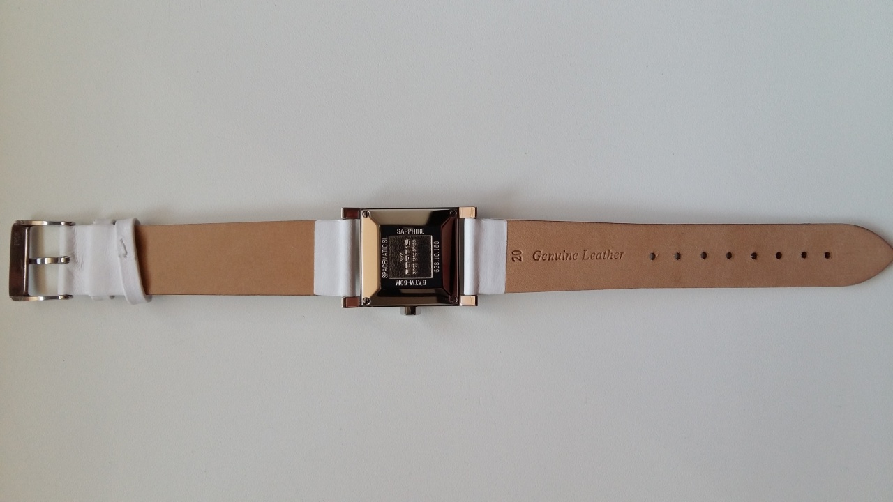 К корпусу крепится новый кожаный ремешок белого цвета из телячьей кожи (родной силиконовый заменен сразу после приобретения часов из-за непрезентабельного вида).