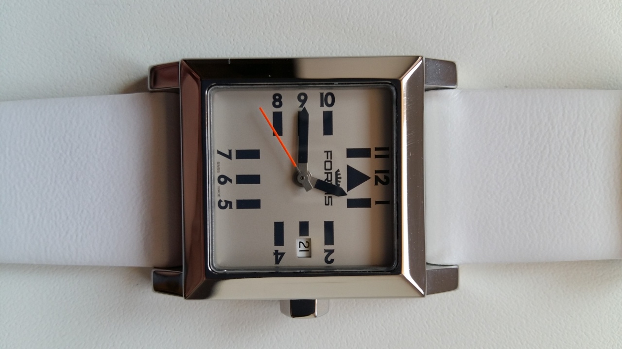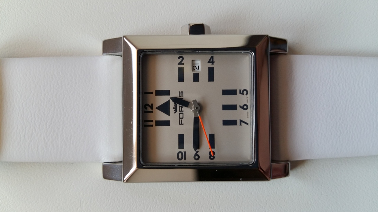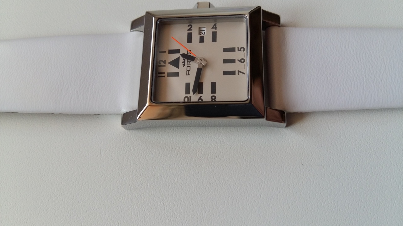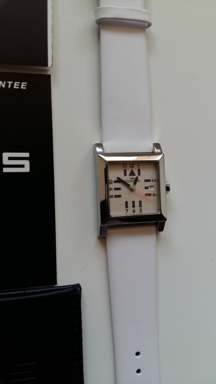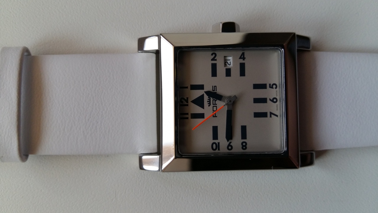 К корпусу крепится новый кожаный ремешок белого цвета из телячьей кожи (родной силиконовый заменен сразу после приобретения часов из-за непрезентабельного вида).