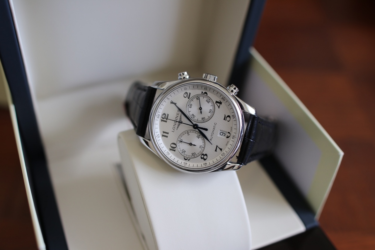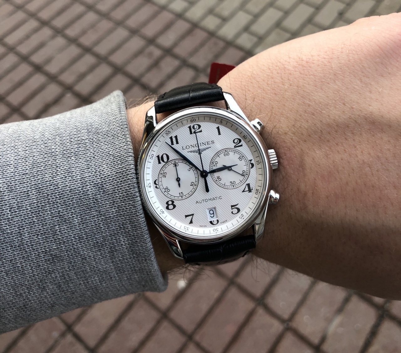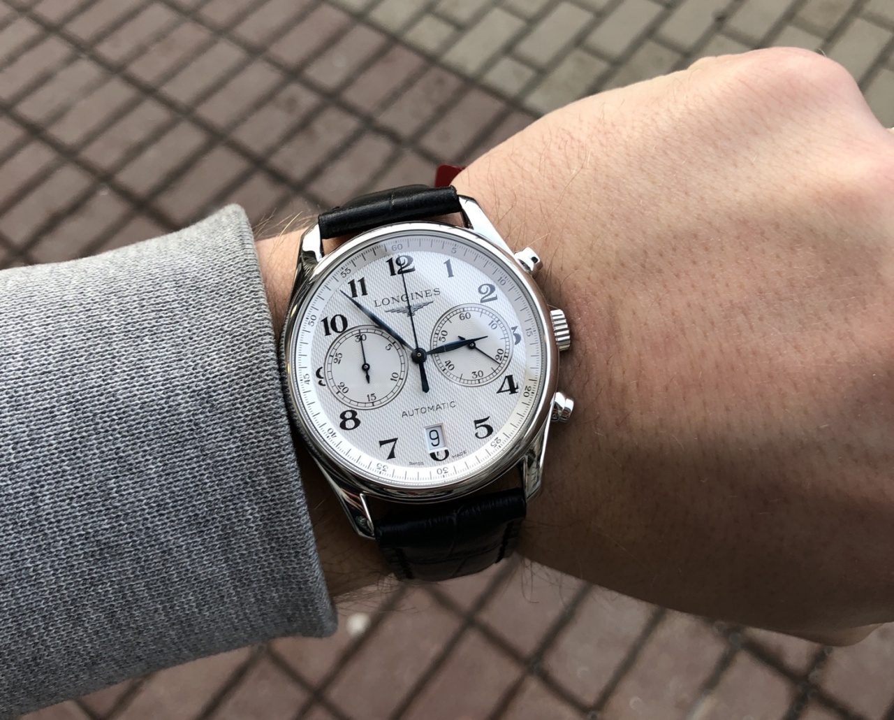 Longines Master Collection Chronograph (Ремень , Светлый циферблат , Вороненые стрелки )