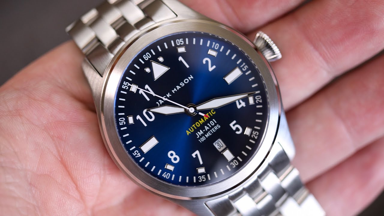 В очередной раз при поиске часов, мечтая найти недорогие Брайты и уже продав технологичные, но без "души" Citizen Perpetual наткнулся на Авито на интересное предложение - редкие, новые и недорогие пилоты от малоизвестного бренда "Jack Mason". Пусть и указано, что дизайн Техасский, но больно мне напоминает IWC Mark XVIII. Цена в розницу в районе $545, гарантия 10 лет (правда по чеку или копии, коих у продавца не было), японский механизм, сапфир, 100 м водозащита, качественное изготовление, приятный синий циферблат с отливом, органичное сочетание цвета и размера шрифтов - в принципе все, что мне нужно в часах.
