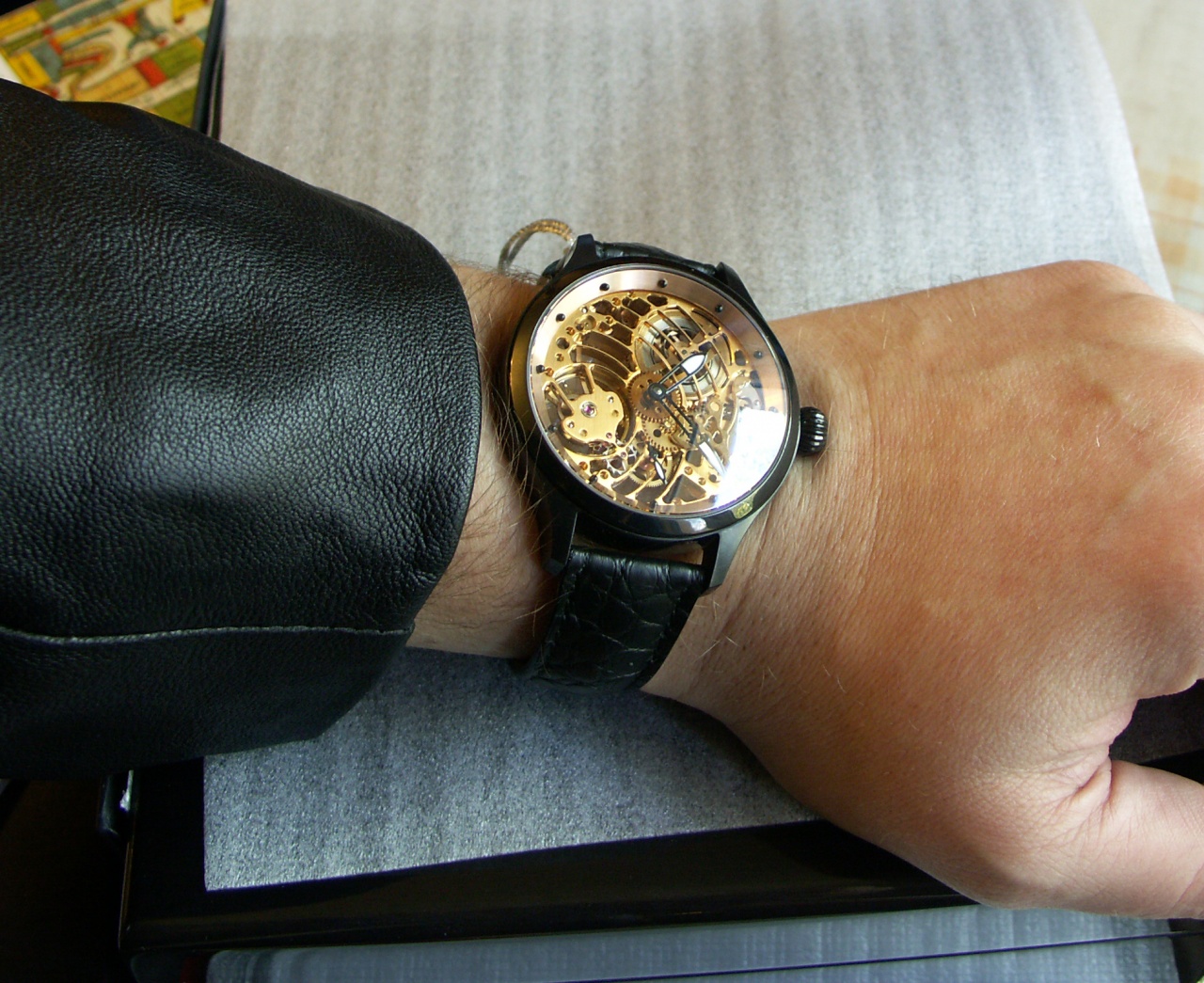 Чтобы ознаменовать это событие, естественно, решил купить себе еще одни часы, как память о своем жестком решении. Очень понравился штейнхартский скелетон. Особо порадовало то, что из кучи представленных скелетонов оставался в продаже как раз тот, который мне, собственно, и понравился. Звали его ESQUELETTO ORO. Лимитка, 20 штук всего на земном шарике.
