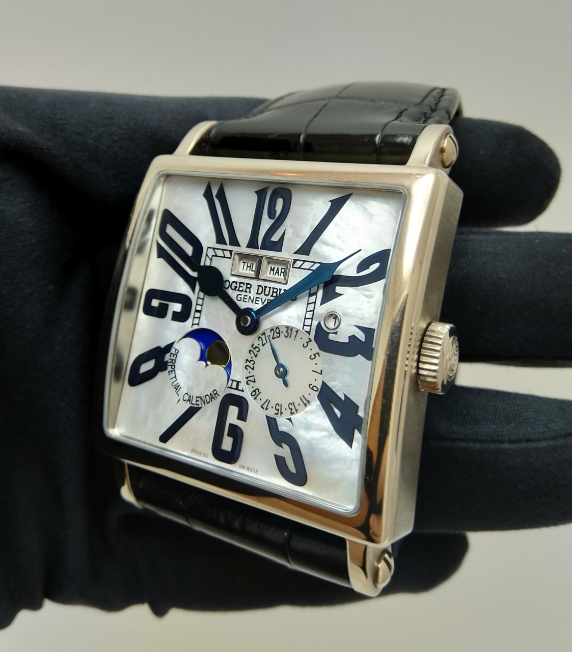 Roger Dubuis Golden Square Perpetual White Gold, Mother of Pearl.