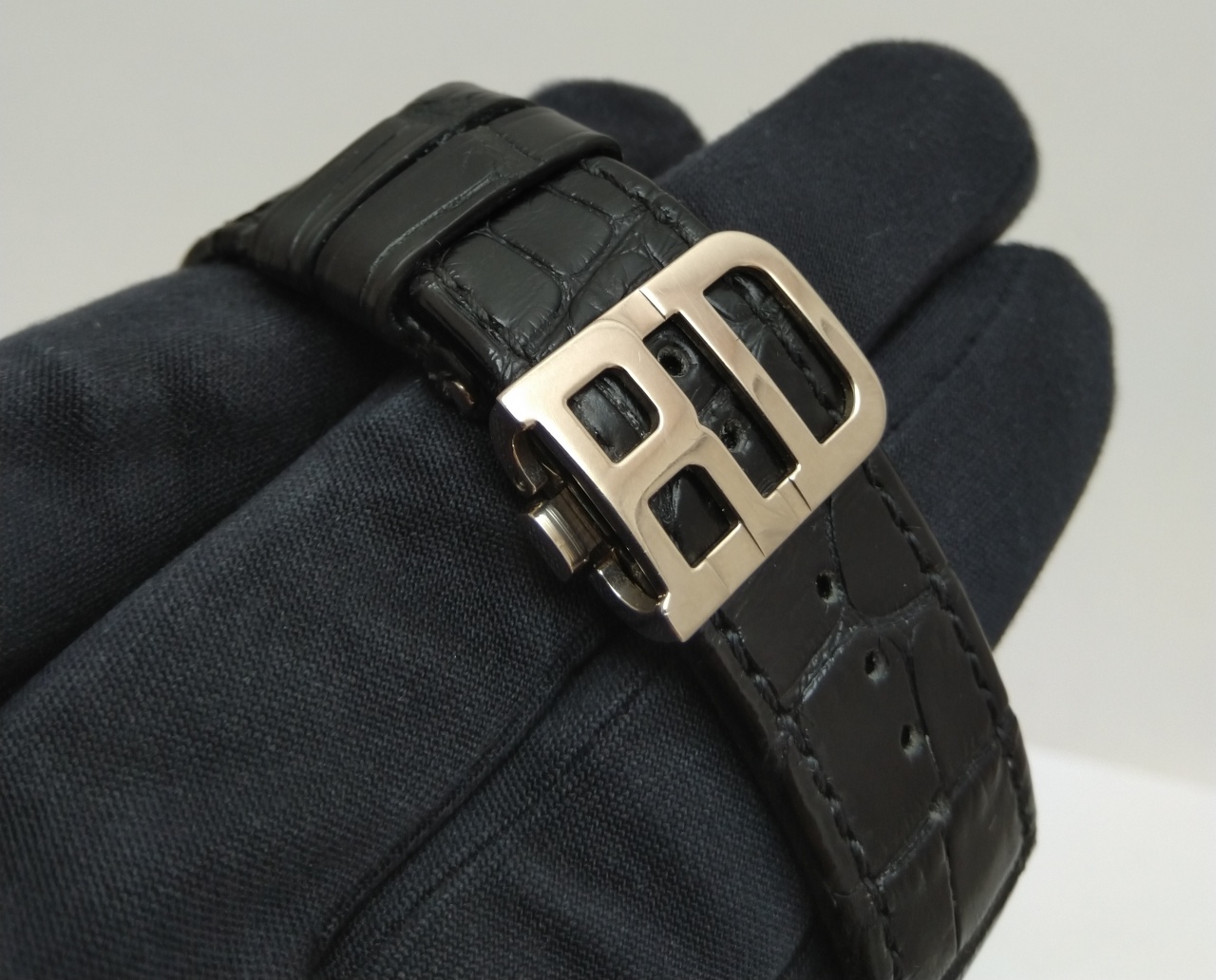 Ремешок: кожа аллигатора с раскладывающейся застежкой из белого золота.