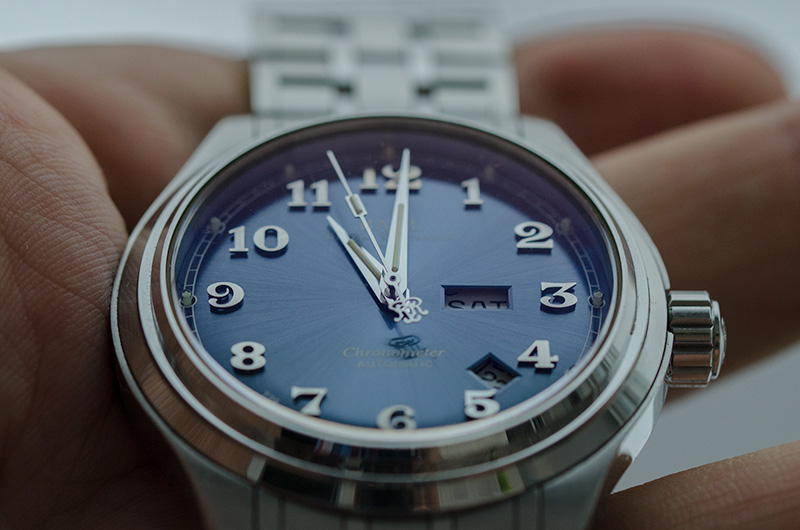 Часы - сплав исторической традиции механических часов и научных достижений современности: тритий на циферблате, лазерная насечка меток.