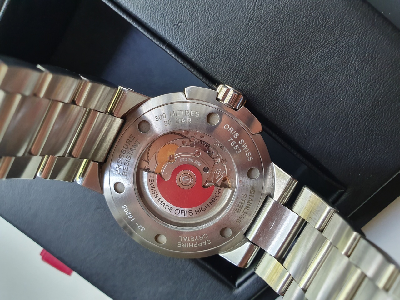 Oris Automatic с синим безелем и циферблатом, диаметр 43 мм, дайверская стальная модель не уступающая по красоте более дорогим собратьям этого вида, тем же Omega Seamaster. Модель сейчас называется Oris Aquis и стоит в бутике от 130 тыс рублей. Часы покупал в 2013 году у оф дилера в Москве, носил нерегулярно, так как у меня в коллекции 6 разных моделей часов. С 2016 года ушел с работы, требующей дорогих аксессуаров, часы лежат в коробке, достаю три четыре раза за год для важных встреч. Состояние часов на 4+, часы полностью исправные, на корпусе и браслете нет заметных царапин. Причина продажи - предстоит большая покупка, собираю средства . Часы не обслуживались, нареканий к точности хода нет. Комплект продажи: часы, паспорт, инструкция и коробки, запасные звенья для расширения браслета. Передам покупателю в Москве или отправлю через гарантированный сервис для расчетов типа наложка.рф. Спешки в продаже нет, торг возможен разумный. Обмен не интересует.