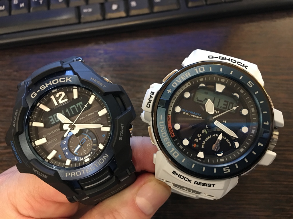 Casio Rangeman GPR-B1000D-1JR, Casio Edifice ECB-800DB-1BER, Casio Gulfmaster GWN-Q1000 , Casio GPW-1000 , Casio G-lide GBX-100KI, Casio Mudman G-9300, Casio g-shock GA-B2100.
