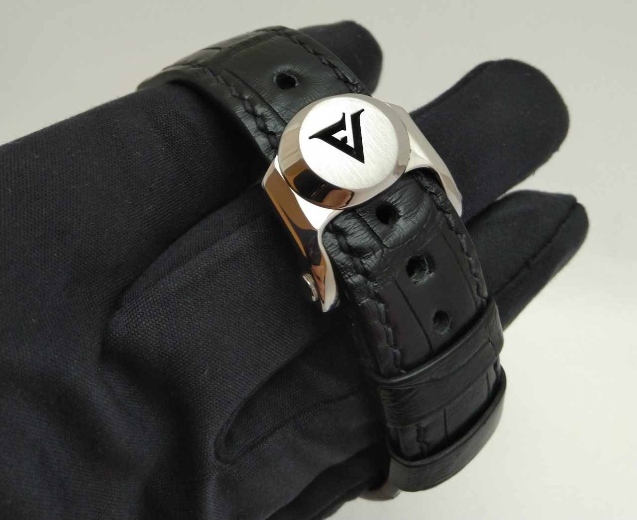 Ремень из кожи аллигатора с раскладывающейся застежкой.