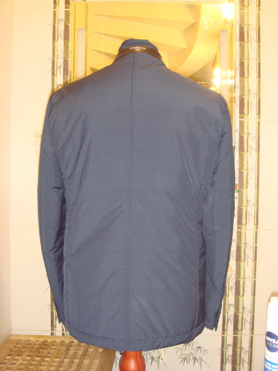 Продается новая стильная шерстяная утепленная мужская куртка, стилизованная под пиджак, бренда TOMBOLINI превосходного исполнения, плотная ткань синего цвета в оригинальную клетку, логотип, отложной воротник с ветрозащитной планкой из кожи, воротник также отделан кожей, двухходовая молния и роговые пуговицы с логотипом бренда, наружные карманы с клапанами, четыре внутренних кармана на пуговицах, на внутренней стороне спины в области пояса оригинально выполнен большой карман на молнии, материал LORO PIANA , RAIN SYSTEM -состав: 60% шерсть, 40% нейлон, все бирки прилагаются , гарантированный 100 % оригинал, размер 54 (IT), производство Италия