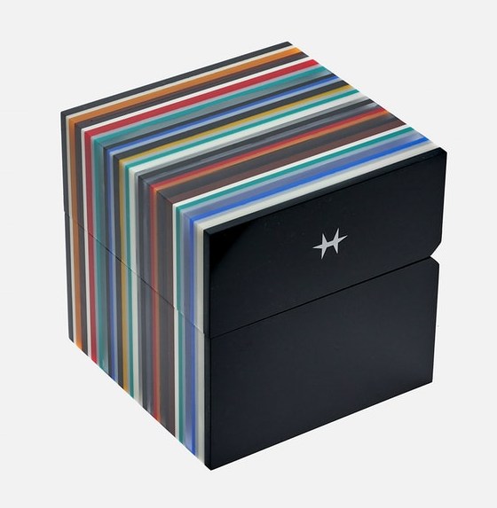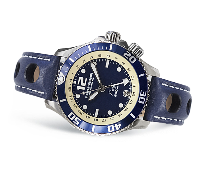 Циферблат часов, доступный в сложном черном и синем с переходом цветах, отличается характерной структурой природного камня, напоминая скалистые берега безлюдных островов полярных морей.