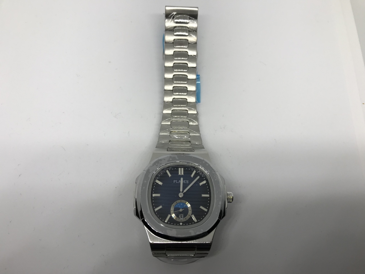 Получил недавно кварцевые часы Pladen - хомаж Patek Philippe Nautilus. Часы пришли в картонной коробочке с инструкцией. Корпус часов похоже изготовлен из какого-то сплава, браслет - стальной, литой, увесистый, солидный. Есть индикатор даты. Лунный календарь оказался имитацией, он просто нарисован вокруг окошка, изображая звёзды и луну