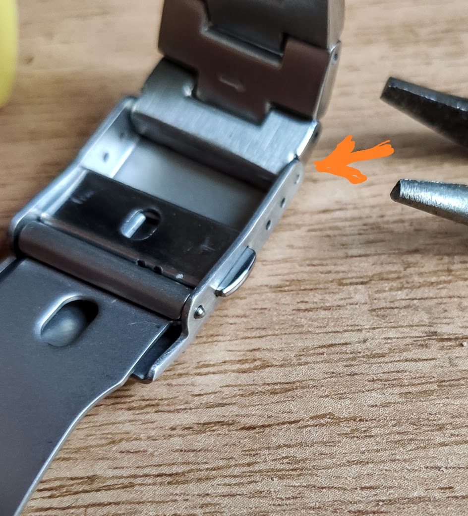Ну, я думаю в эту сторону, да. Есть в хозяйстве дремель с кучей насадочек, им и сточить край и заполировать, наверное, было бы не сложно. Для того, чтобы можно было все три дырочки использовать, надо бы и легкий запил на втором звене сделать, и это как раз делать не страшно, у меня рука тонкая и "лишних" звеньев высвободилось много. А вот пилить единственное последнее, нестандартной формы. не имея возможности вернуть, как было, чет немного жалко. Спросил китайцев, что имелось в виду и как укорачивать такой браслет, нет ли у них более узких звеньев, или более широкой застежки. Но я догадываюсь, что они мне ответят, если и ответят.