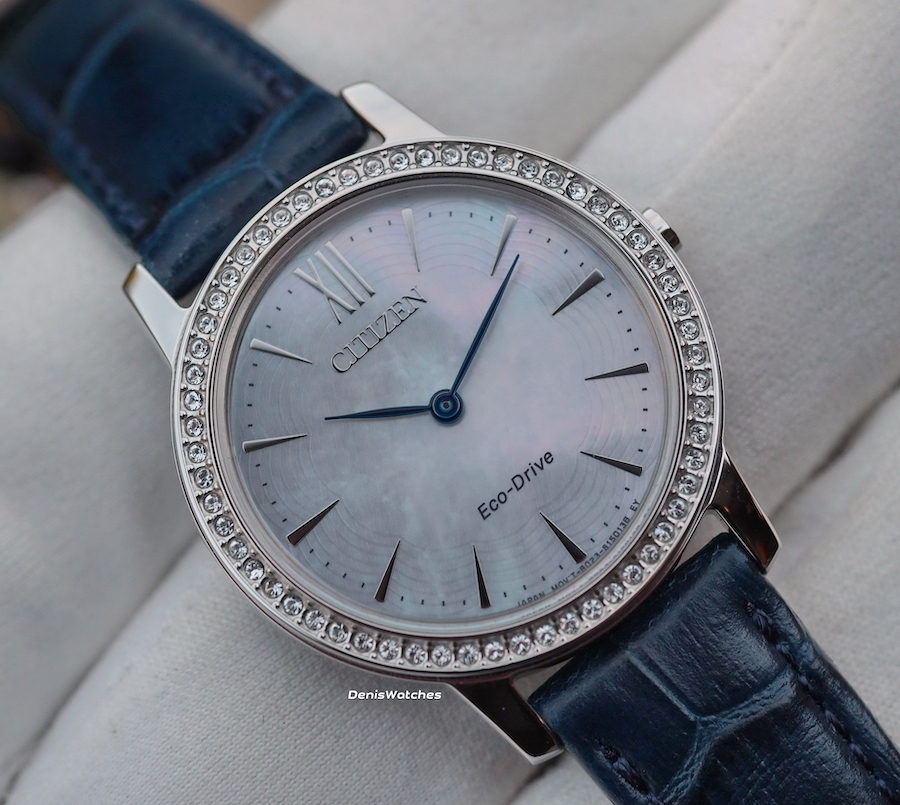 Элегантные женские часы с перламутровым циферблатом и кристаллами Swarovski на безеле