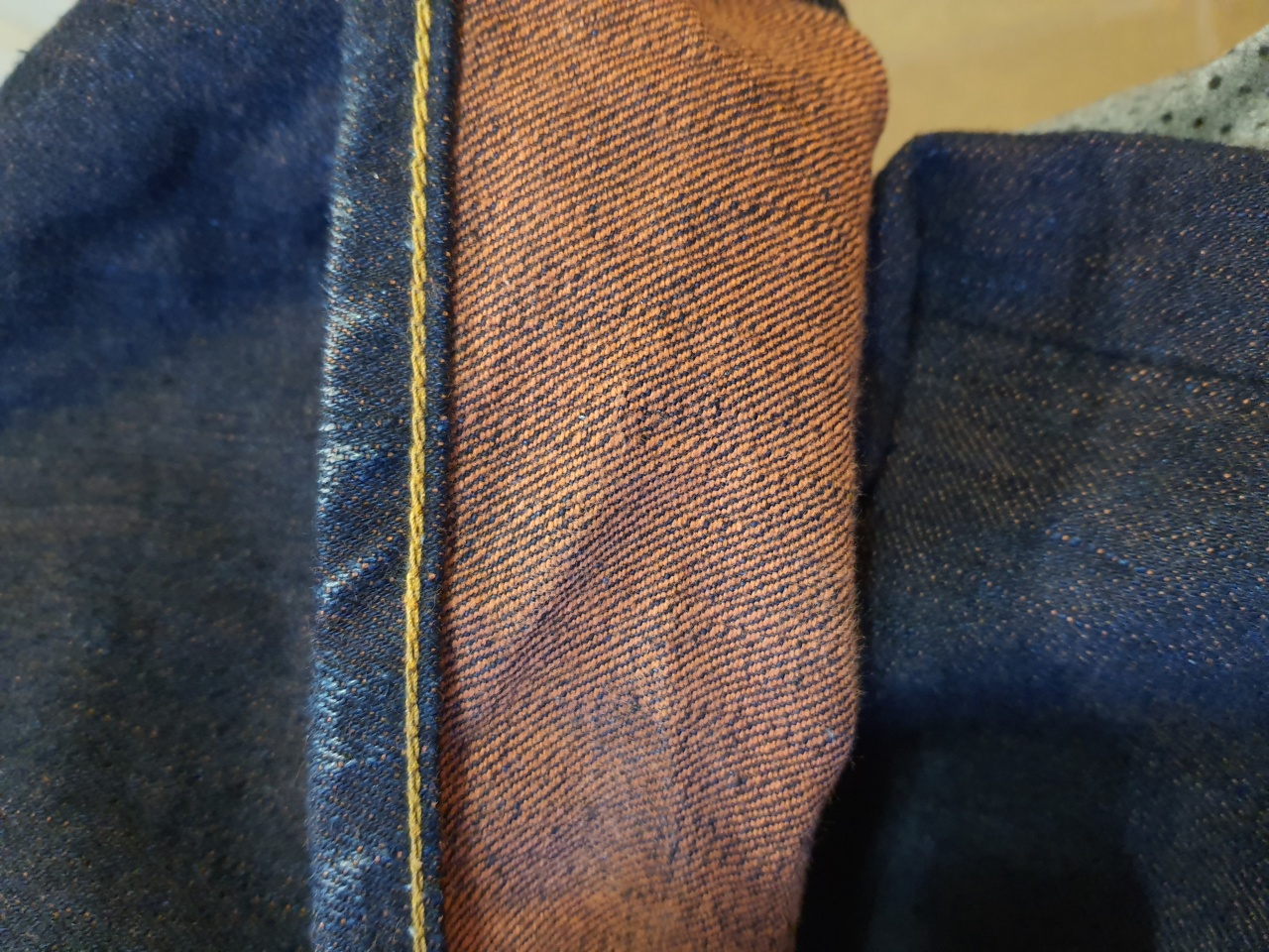 Ну вообще фишка именно японских джинсов, что деним под определённую модель заказывается "авторский". Факт окрашивания идентичным красителем уточной нити не превращает деним марки А в деним марки Б просто по факту наличия этого красителя (нюансов может быть более, чем много). Даже если деним заказывается у одной мельницы, из "одного рулона" не делают. Бывают очень похожие моменты типа Eternal 14.5OZ и The Flat Head Pioneer, а также очень фактурно близкие PBJ-xx-14.5OZ-Oni-old-14.5OZ-TSG-1000-series, ну и Tanuki kaze и PBJ в похожем дениме были, но это прям реально редко и это базовые серии, для лимиток, коллабов и прочего всегда стараются деним максимально персонализировать под кокретный проект.