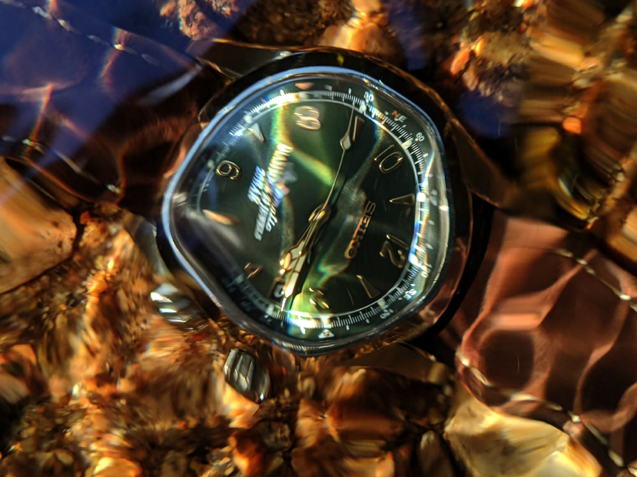 очень органично. Точность хода, как при автозаводе, так и при ручной заводке, более чем достаточная. Читаемость показаний в темноте хорошая. Так что мы имеем дело с нормальными (и красивыми!, это голос моей супруги