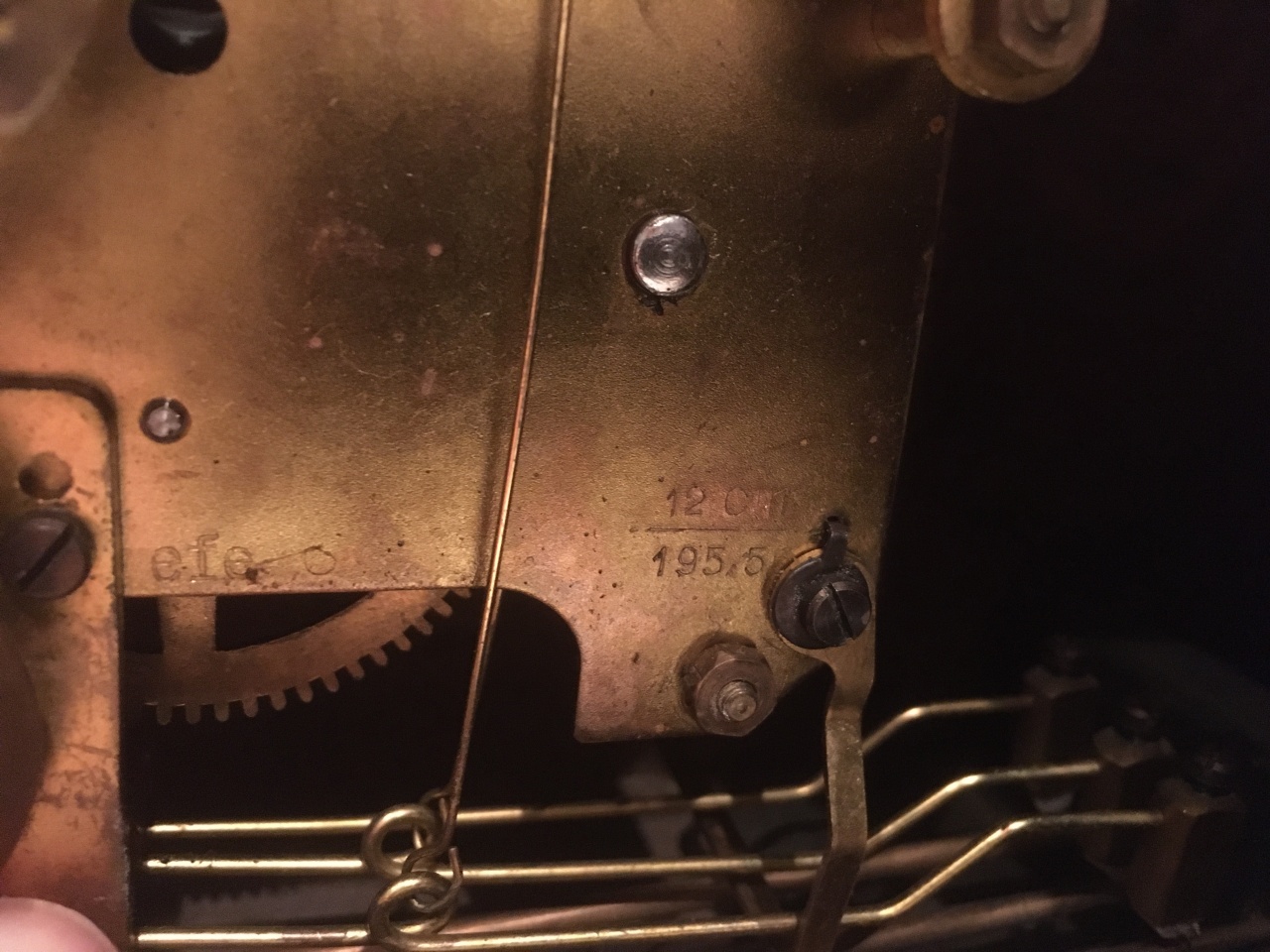 Здравствуйте, подскажите по часам... Каких годов и кто производитель? На механизме нашел только размер маятника и надпись Efe. Жаль нет стекла... Идут точно, бой отличный.
