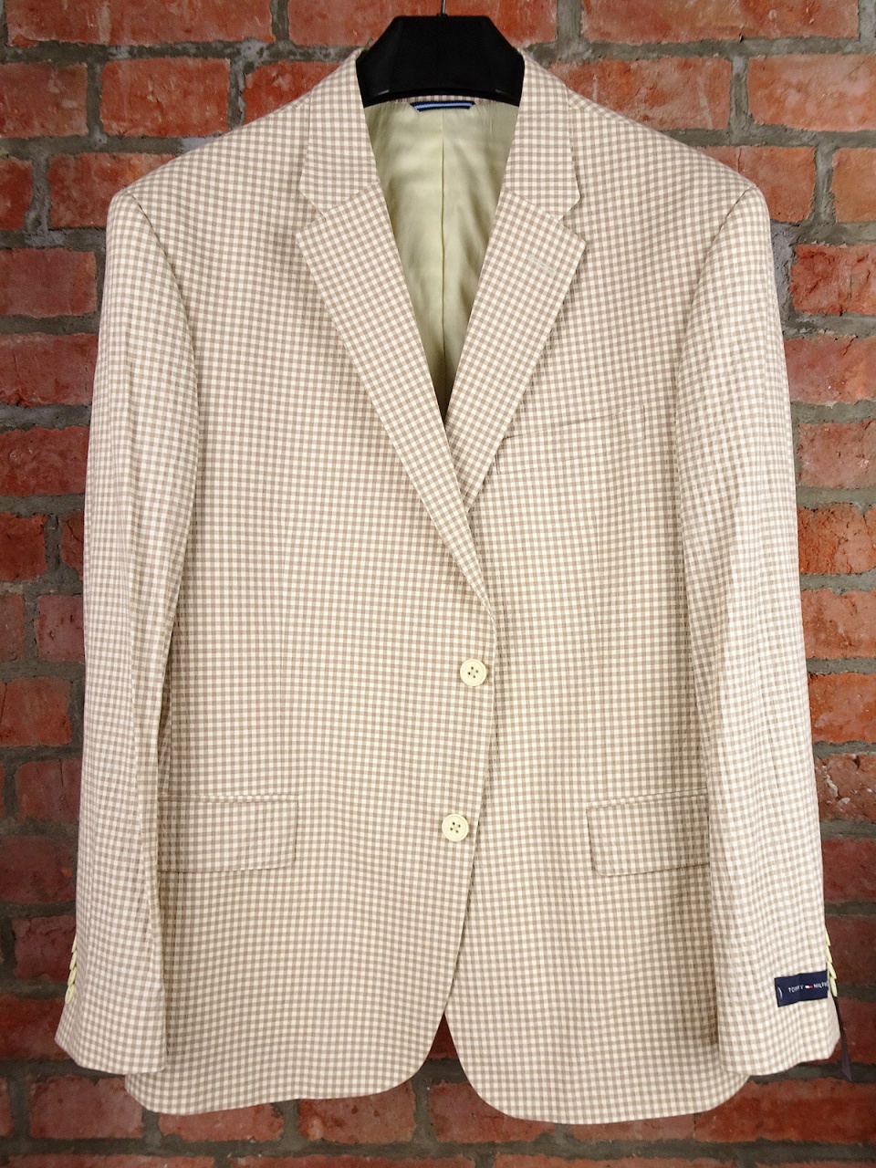 TOMMY HILFIGER стильный мужской летний пиджак, светло-коричневая клетка, размер 42S (наш 52)!