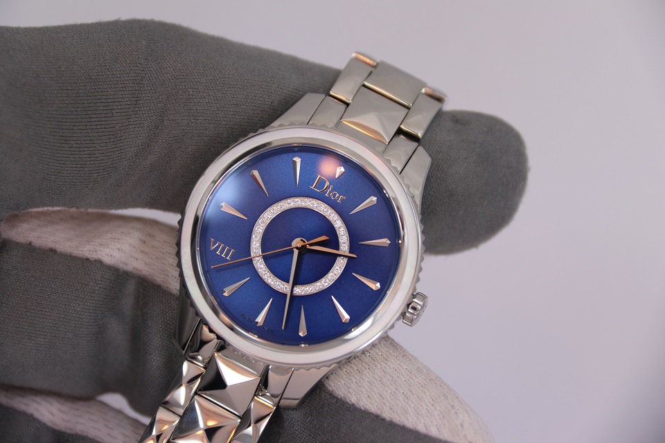 Неспешно продаются новые наручные женские кварцевые часы с бриллиантами Dior VIII Montaigne Diamonds * Ø 32 ММ * СИНИЙ ЦИФЕРБЛАТ * БРАСЛЕТ * ПЕРЛАМУТРОВЫЙ БЕЗЕЛЬ * БРИЛЛИАНТОВОЕ КОЛЬЦО НА ЦИФЕРБЛАТЕ * РИТЕЙЛ В США $5.250 * ПРОДАЖА 150.000 *