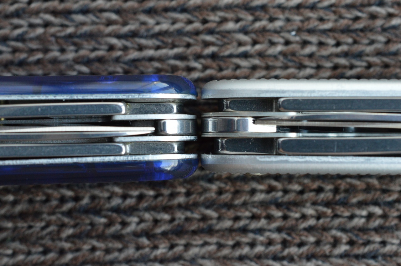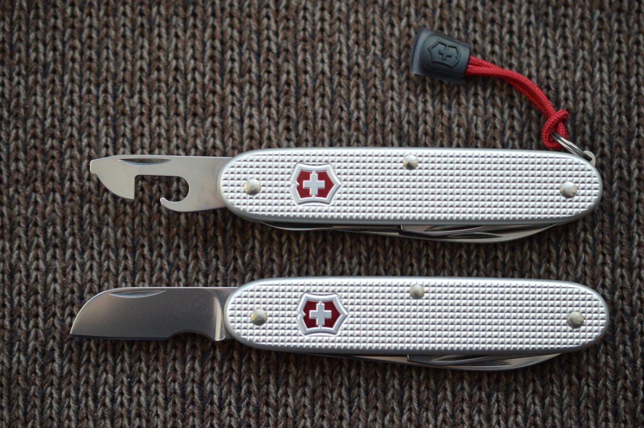 Victorinox Pioneer-X Alox От обычного пионера отличается наличием третьего слоя с ножницами. Для сравнения Electrician Alox и Climber.