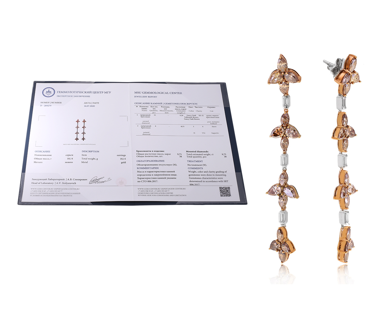 Великолепные золотые серьги с бриллиантами 9.75ct