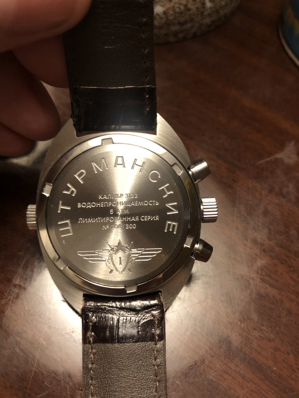 Вот приобрёл новое переиздание советских Штурманов производства Волмакс. При переводе часов обнаружил удивительную вещь. Часы со стоп-секундой,а это значит механизм с 31659. И не поверил, мех то советский. Как в 2021 году, в новых часах стоит советский мех. Один только вопрос, он новый и собран из запчастей, или он б/у и просто сделан репассаж. Жаль что стоит пластиковое проставочное кольцо, а не напрямую лапками крепиться в корпус. ЦСС и минутный накопитель (стрелка), кажется тонковатыми по сравнению с оригиналом. Циферблат визуально выигрывает у оригинала. Манежи утоплены, и это видно хорошо, что это идёт в + циферблату. Ушки 19мм, хотелось бы 20 мм. Корпус 40 мм сделан отлично, стекло на расстоянии, как бы увеличивает циферблат. Читаемость хорошая. Я бы сказал, современное переиздание в целом по совокупности удалось на мой взгляд.