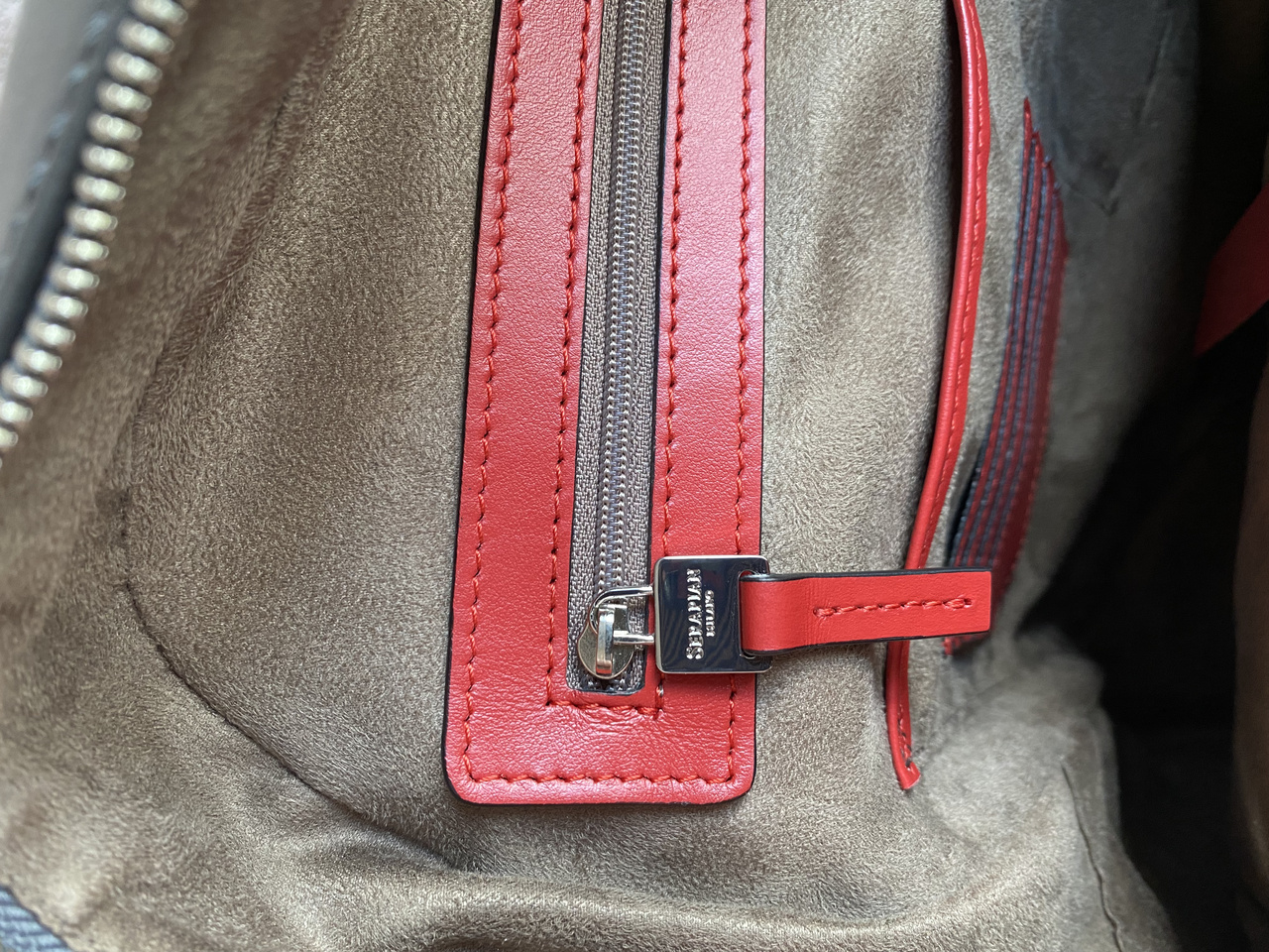Рюкзак сделан на контрасте фактур гладкой матовой кожи и фирменного материала (канвы) Stepan с объемным паттерном в виде букв «S» (Стефано Серапьян запатентовал его в 1970-х). Внутрь поместятся ноутбук, зонт, кошелек, во внешний плоский карман на молнии — смартфон и ключи.