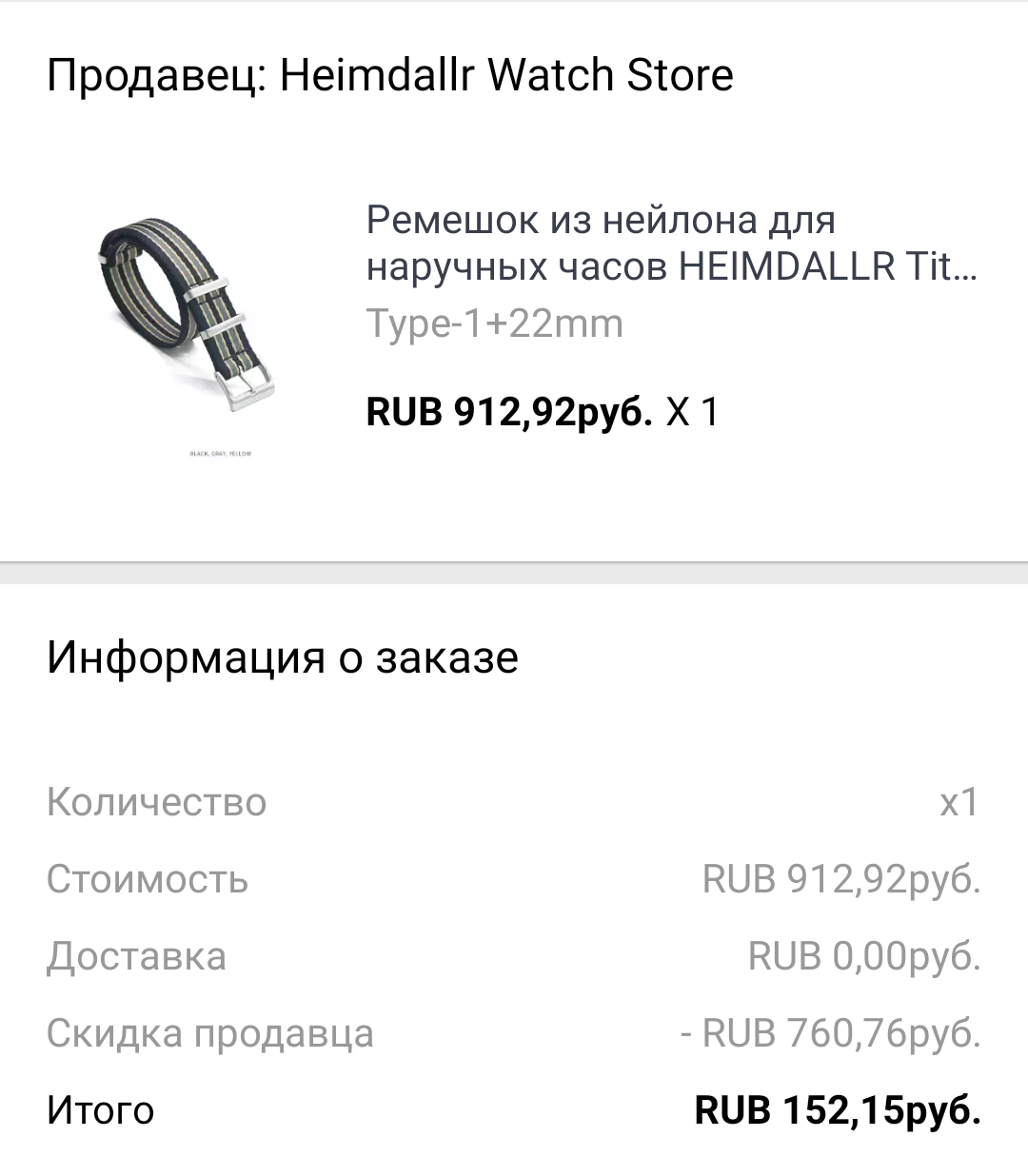 По отзывам ремешок хороший. На странице продавца берём скидку 760₽ и на выходе НАТО за 152₽.