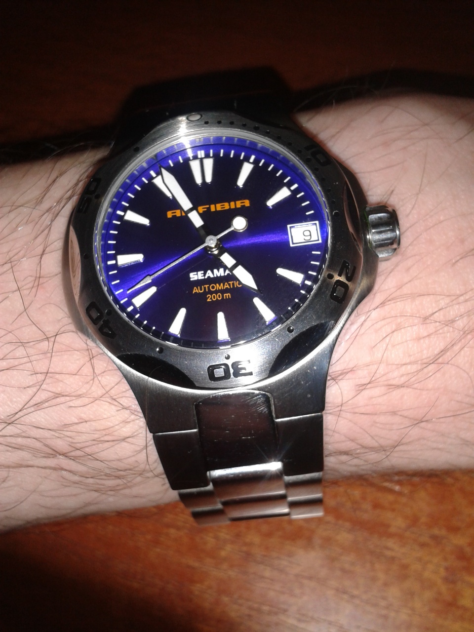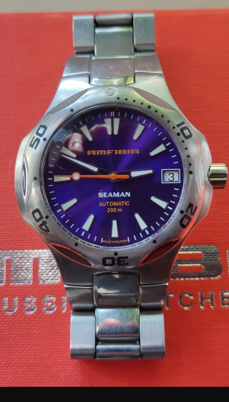 Синий Seaman поздней сборки со стрелками от "Престижа" и головкой от Амфибии Классики