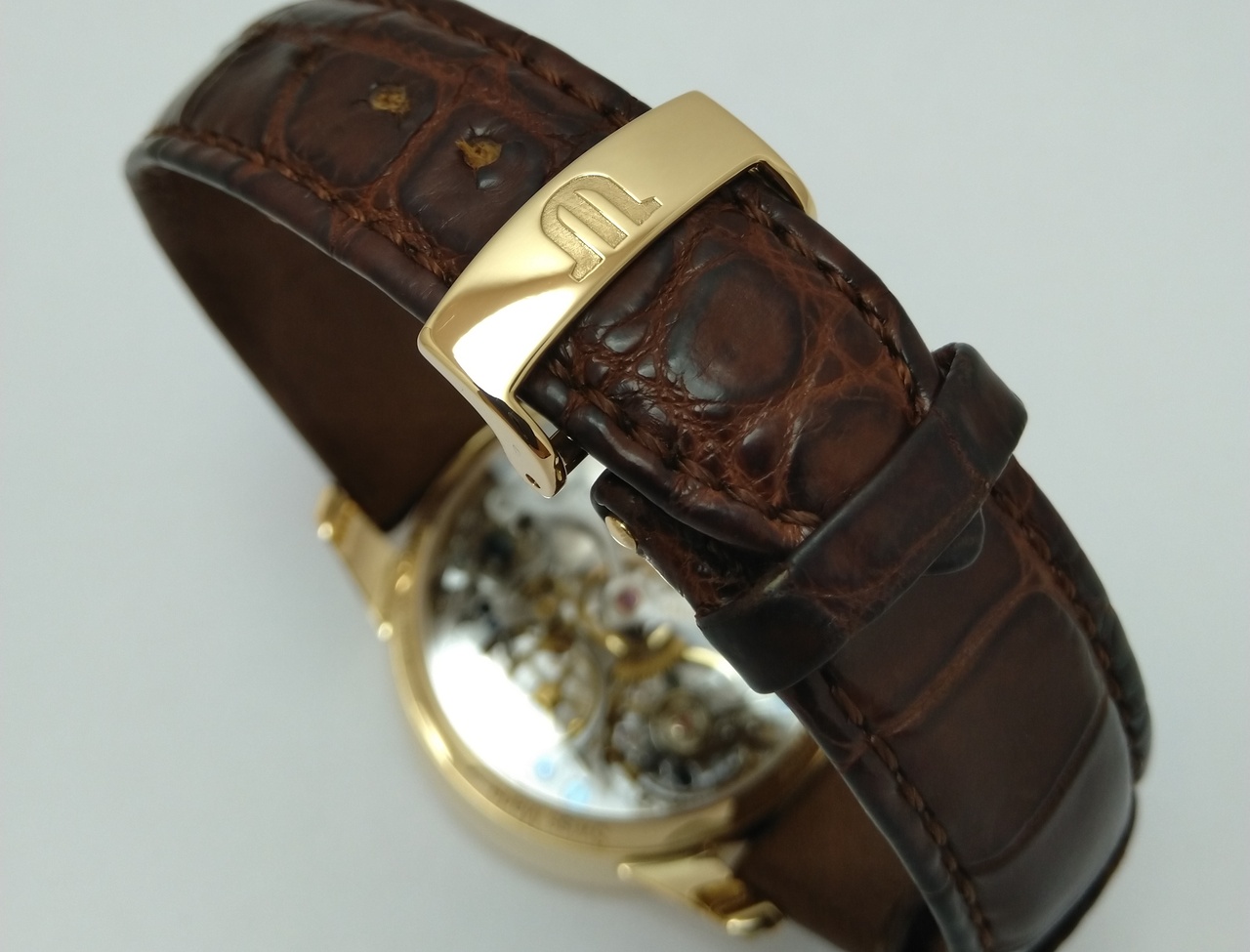 Кожаный ремешок с раскладывающейся застежкой из желтого золота 18К.