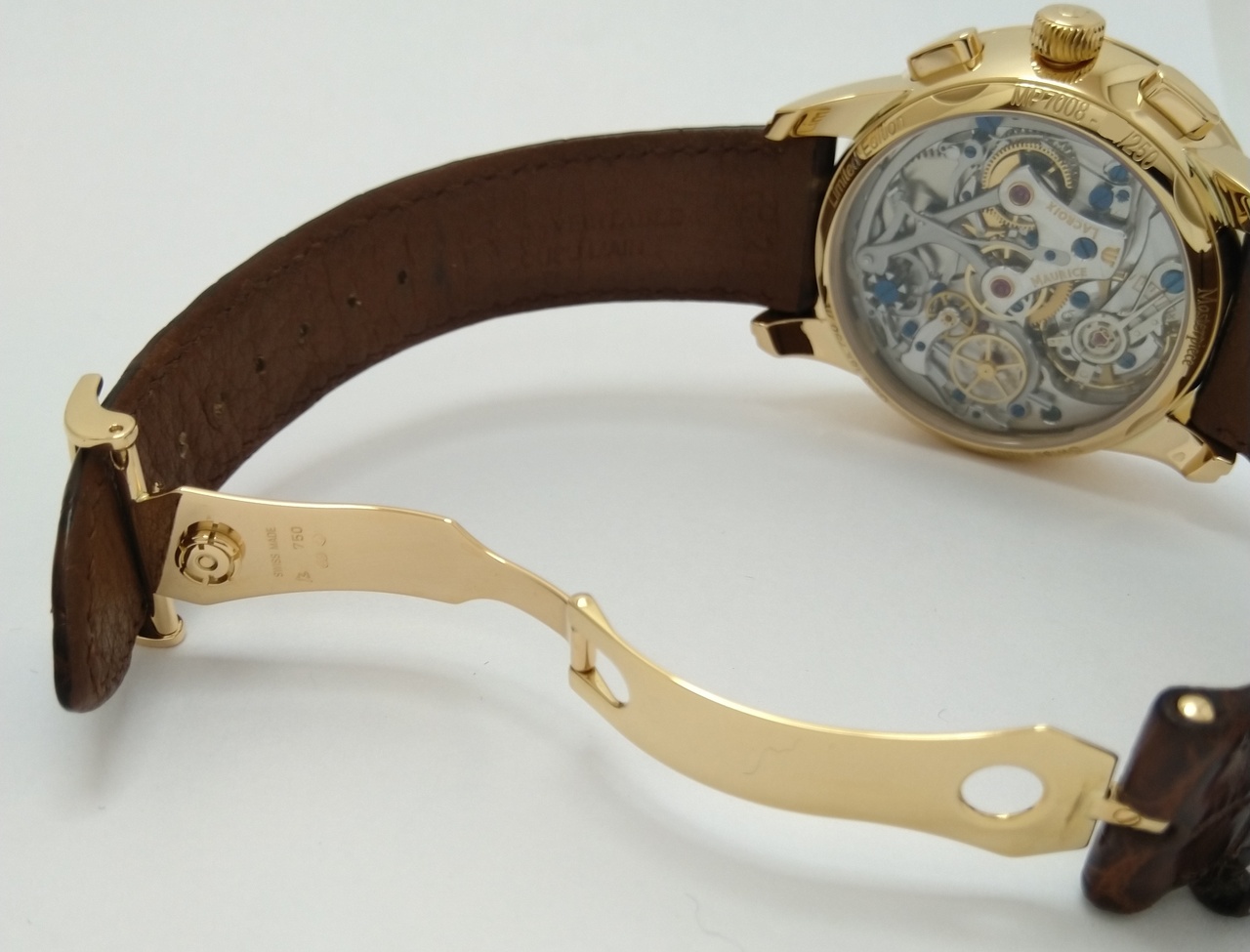 Корпус: 45 мм, желтое золото 18К, сапфировые стекла.