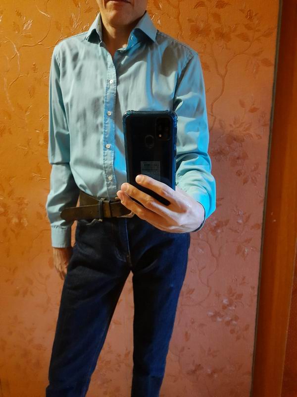 Впрочем, есть еще такой вариант, если к этим шортам нужны рубашки без принта. Я сильно выше вешал фотку своей старой бирюзовой рубашки с длинным рукавом (переаттачиваю её сюда), но её вообще никто не прокомментировал. Или это как раз и есть для данного форум сигнал: если никто не критикует - значит, вещь хорошая и надо брать?