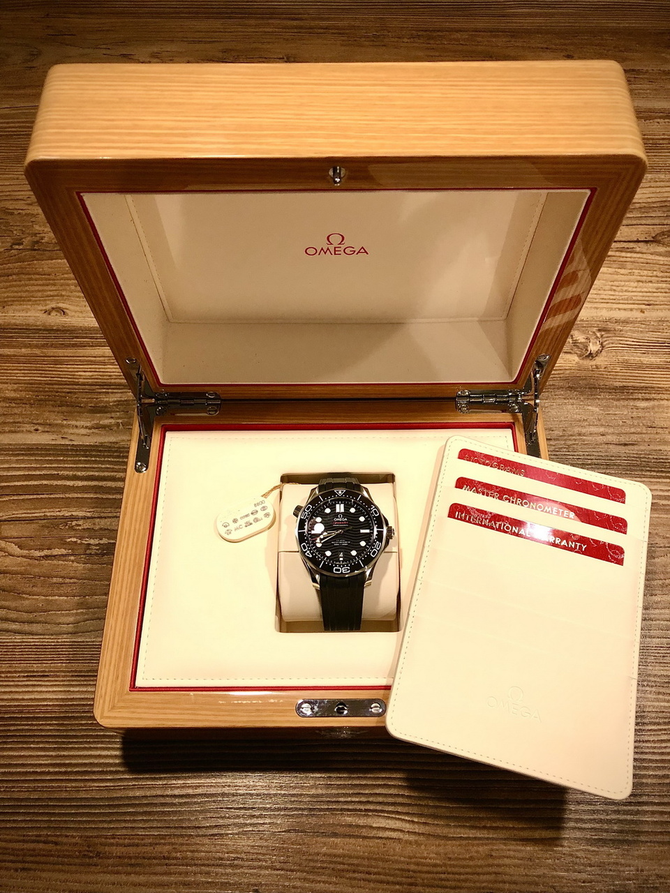 Полный комплект: внешняя коробка, бирка, 3 карточки, инструкция. Официальная международная гарантия Omega 5 лет. Любые проверки. Часы в Санкт-Петербурге, возможна отправка по РФ.