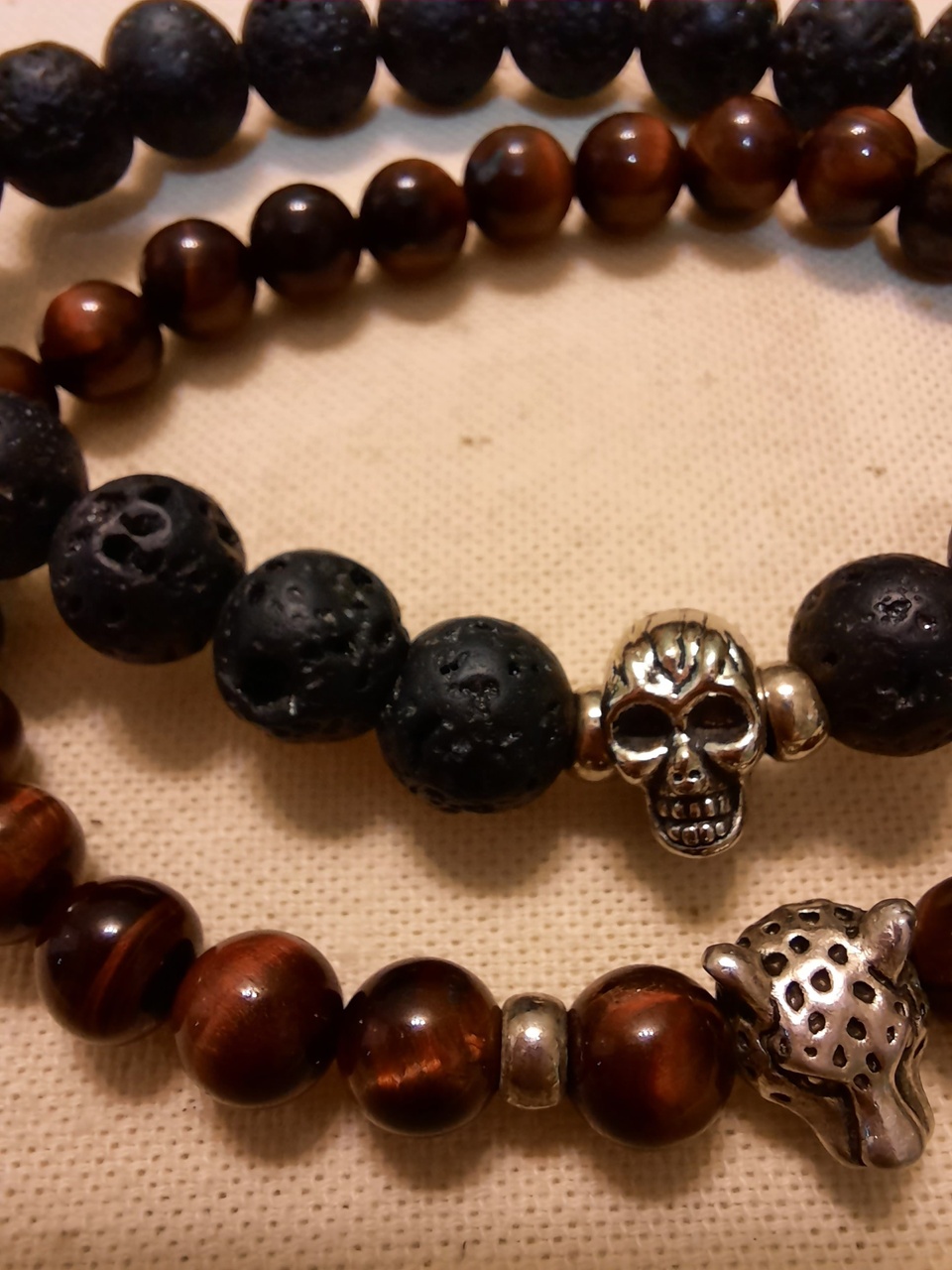 я ей как-то в полушутку предложил не зацикливаться сугубо на женской клиентуре, а что-то и для мужчин предложить - в итоге она несколько браслетов изготовила из "мужских" камней - что-то там "тигровый глаз", "бычий глаз", вулканическая лава.... я не очень в этом секу...