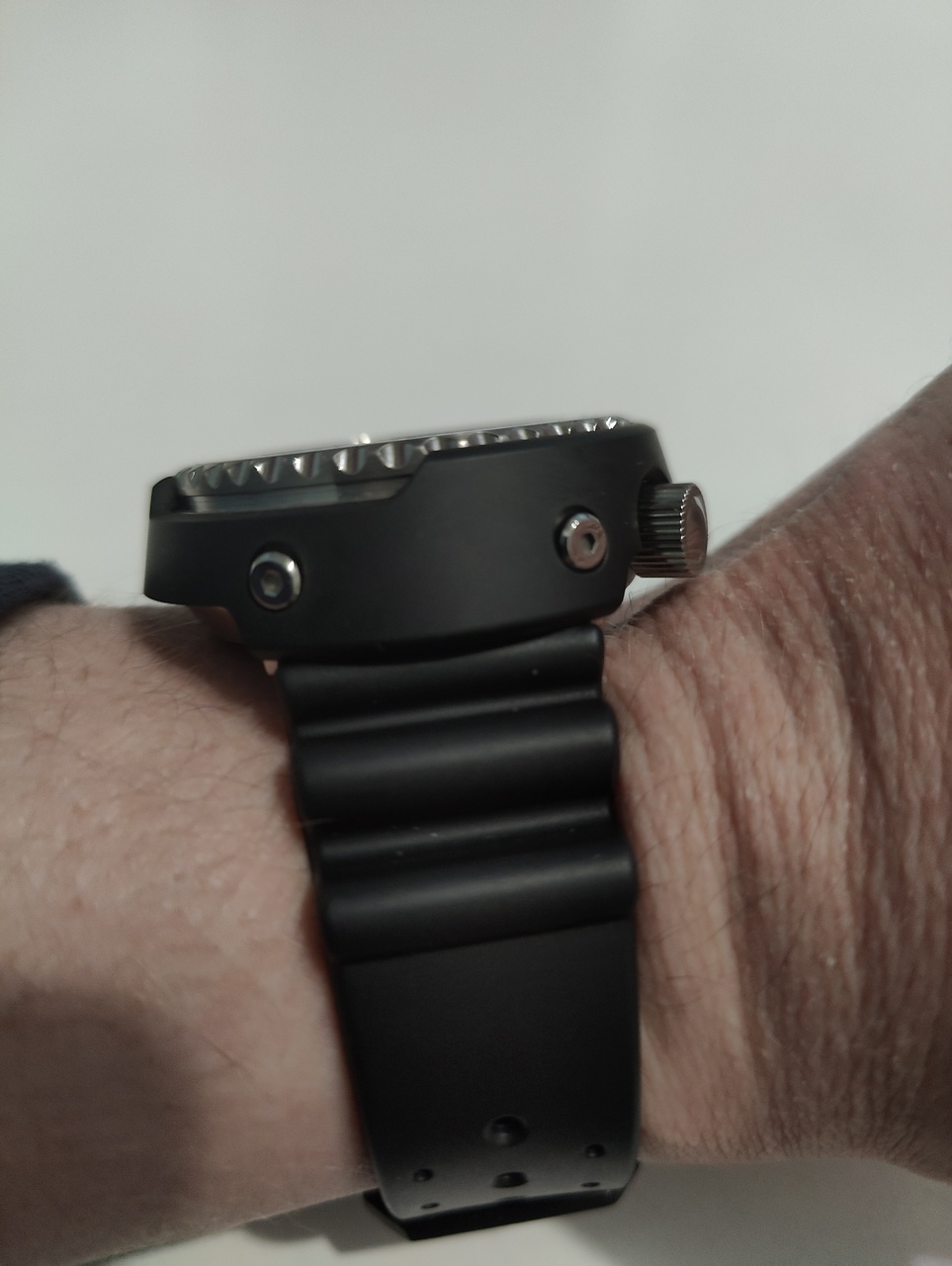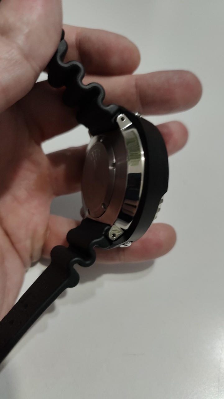 Безель как рифленый за счет нанесенных выпуклых цифр (может цеплять шерстяной рукав). Цифер чистый-читаемый, на фоне затемненного безеля выглядит зрительно не большим, как и сами часы выглядят на руке компактно. Головка с резинкой, пружинит от резьбы. Глаз не кривит. Браслет норм - звено убрал сам. Застежка с торцов острая. С браслетом часы весомые – 160гр. Стоп-секунда работает. За 2 месяца часы приработались и стабильно показывают +14с (+/-2 c) в сутки. Открывалки для такой крышки нет, уже бы всЁ отремонтировал