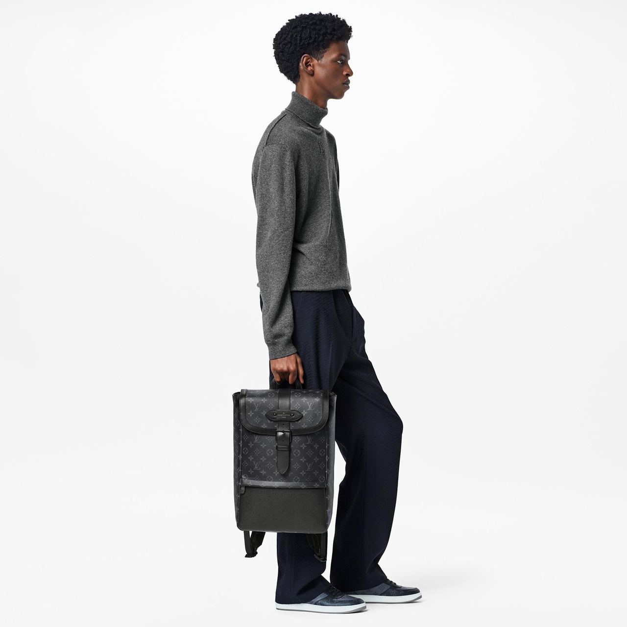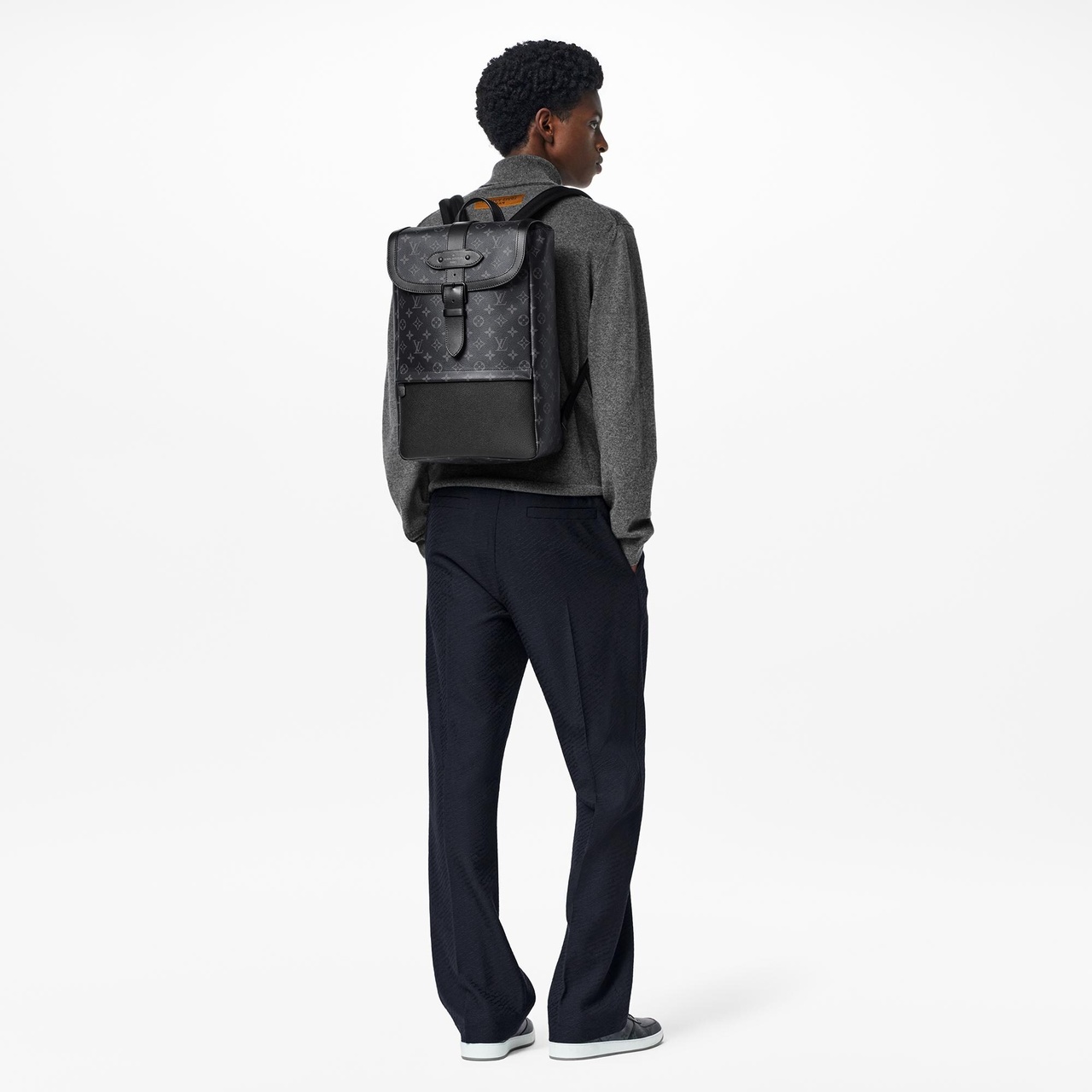 "Новый рюкзак Saumur — актуальная интерпретация одноименной сумки в жокейском стиле, представленной Домом в 1986 году. Минималистичную элегантность канвы Monogram Eclipse акцентирует эффектная магнитная застежка с декоративной пряжкой и отделка из кожи чёрного цвета, отражающая эстетику классического багажа Louis Vuitton. Модная модель, дополненная отделением для ноутбука, станет идеальным выбором на каждый день."