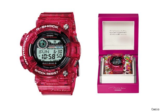 Часы G-Shock Frogman были выпущены ограниченным тиражом в 300 экземпляров летом в честь 40-летия Tokyo FM. Спроектировал часы один из самых известных японских художников-современников Такаши Мураками (Takashi Murakami). Базовой моделью стали Casio GWF-100TM, браслет и корпус которых Мураками «раскрасил» в ярко-розовый. Задняя стенка часов оформлена фирменными цветами, точно так же, как и специальная подушка, разработанная художником. Обычно, часы G-Shock стоят не более тысячи долларов. Но эти часы, цена которых 3 600$, исключение из правил (а на eBay их и вовсе продают в четыре раза дороже).