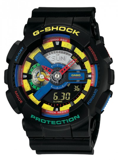 На этот раз Casio G-Shock объединились с дизайнерским дуэтом Dee & Ricky, прославившимся, прежде всего, своими украшениями из конструктора Lego. Мдель GA110DR-1A переосмыслена в стиле игрушечных часов, перегруженных яркими деталями на фоне черного корпуса и браслета. Особенностью этих часов является то, что это хронограф, выпущенный ограниченным тиражом. Упакованы в металлическую коробку.