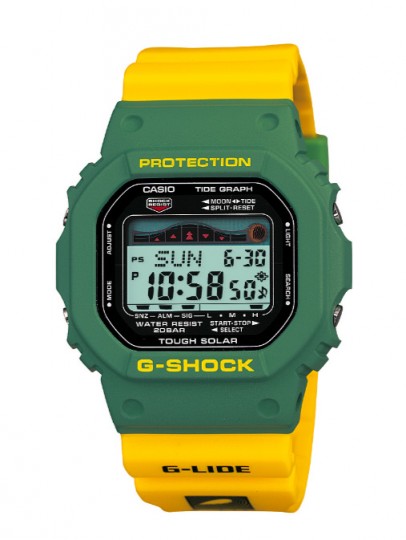 G-Shock и Фонд Серфингистов объединились во второй раз, чтобы выпустить фирменные часы, обозначающие их сотрудничество. Ведь уже на протяжении 25 лет G-Shock защищает море, волны, пляжи и другие составляющие мира серфинга! Это модель GRX5600SRF-3, выполненная в ярких желто-зеленых цветах с названием фонда на ремешке. Были выпущены в июле.