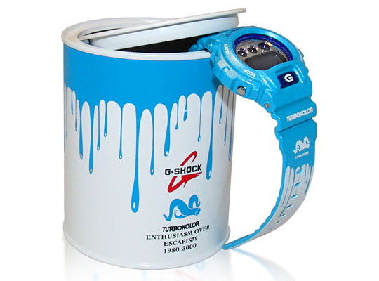 Польское подразделение G-Shock представили их первый проект, выпущенный совместно с польским брендом уличной одежды TURBOKOLOR. Известный польский художник Swanski приложил руку к дизайну часов, браслет и корпус которых, как будто измазаны в голубую краску. Это модель DW-6900, которая идет также в специальной упаковке.